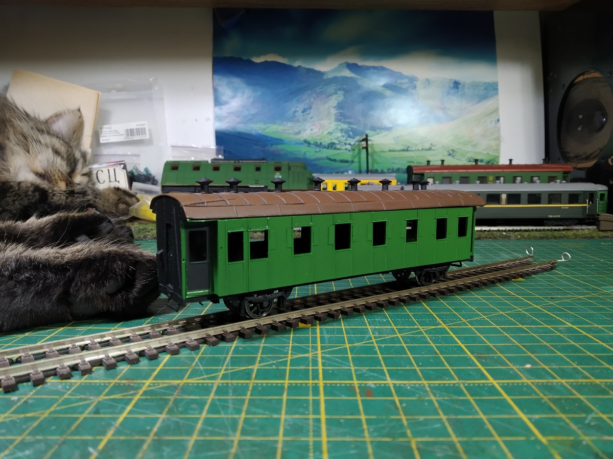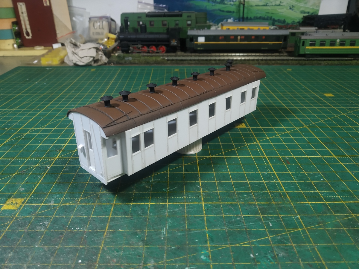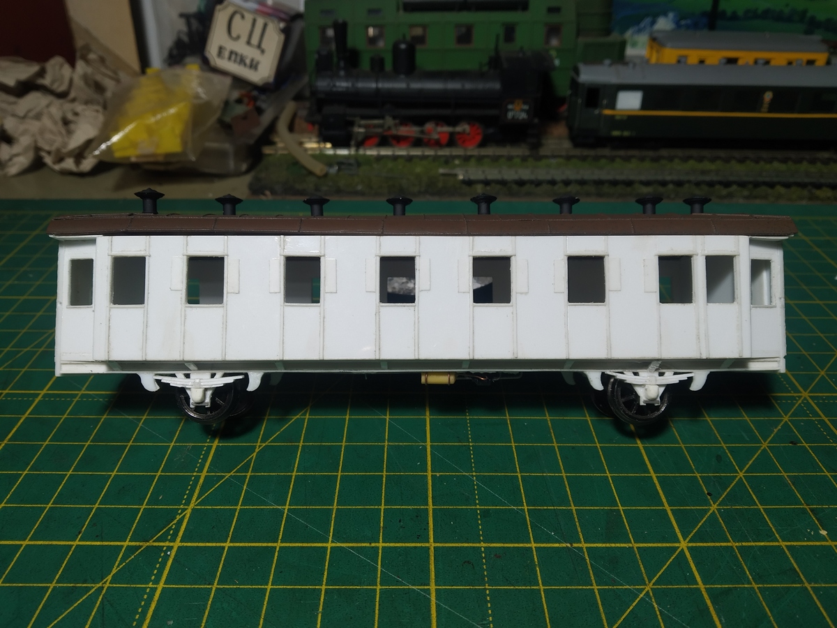 класс! А як ви вигнули дах так? У мене було без варіантів. Я з довгих смужок зклеював дах вагона. По скатам для дощу орієнтувався на цю модель, вона наче не суперечить фото