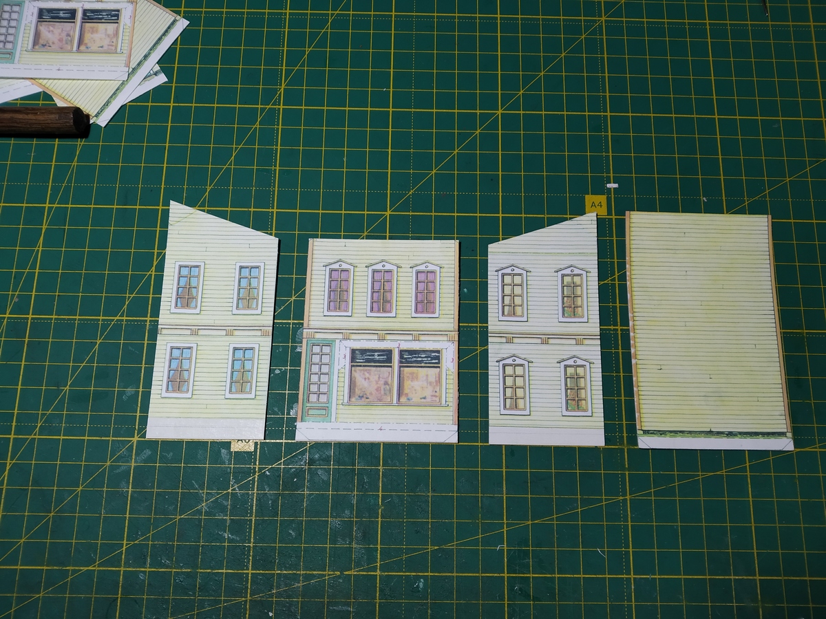 Скомпоновал в своём вИдении, наклеил на картон 0,5 мм, с помощником вырезали все оконные проёмы.