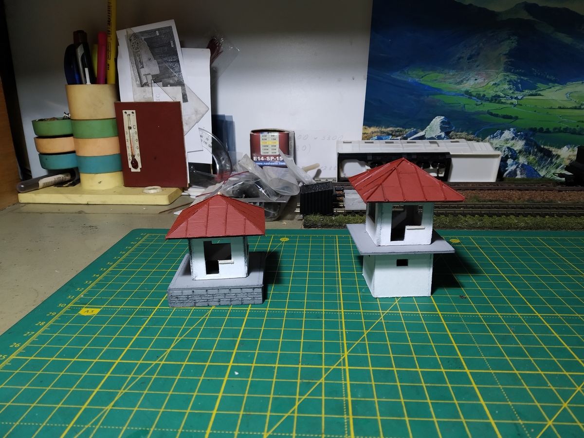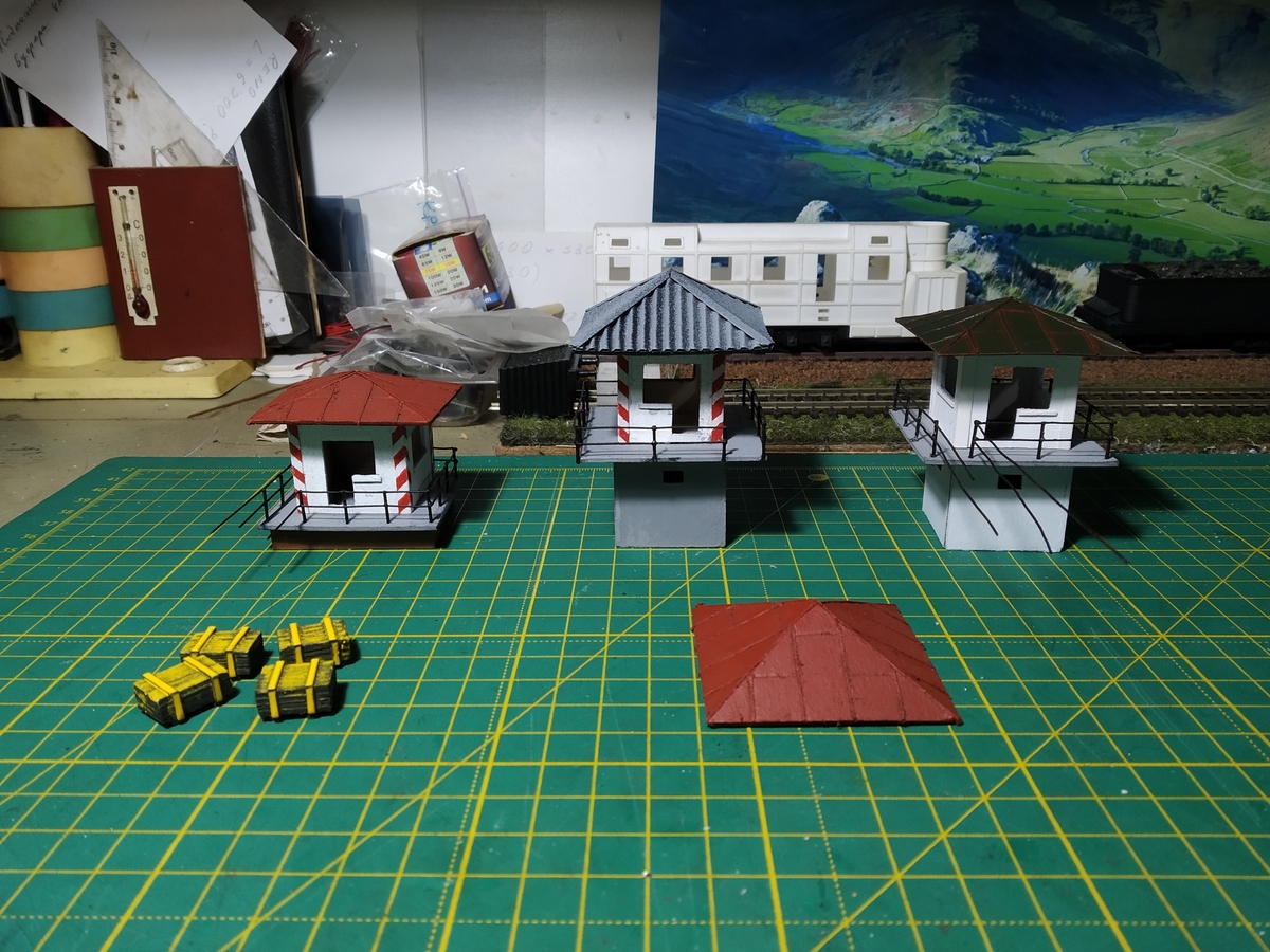 Заготовки. Два поста к порталу тоннеля, как уже показывал ранее, и один на правый фланг моста. По ходу работы образовалось некоторое количество отходов. От вырезания оконных проёмов, в частности. Попробовал использовать.