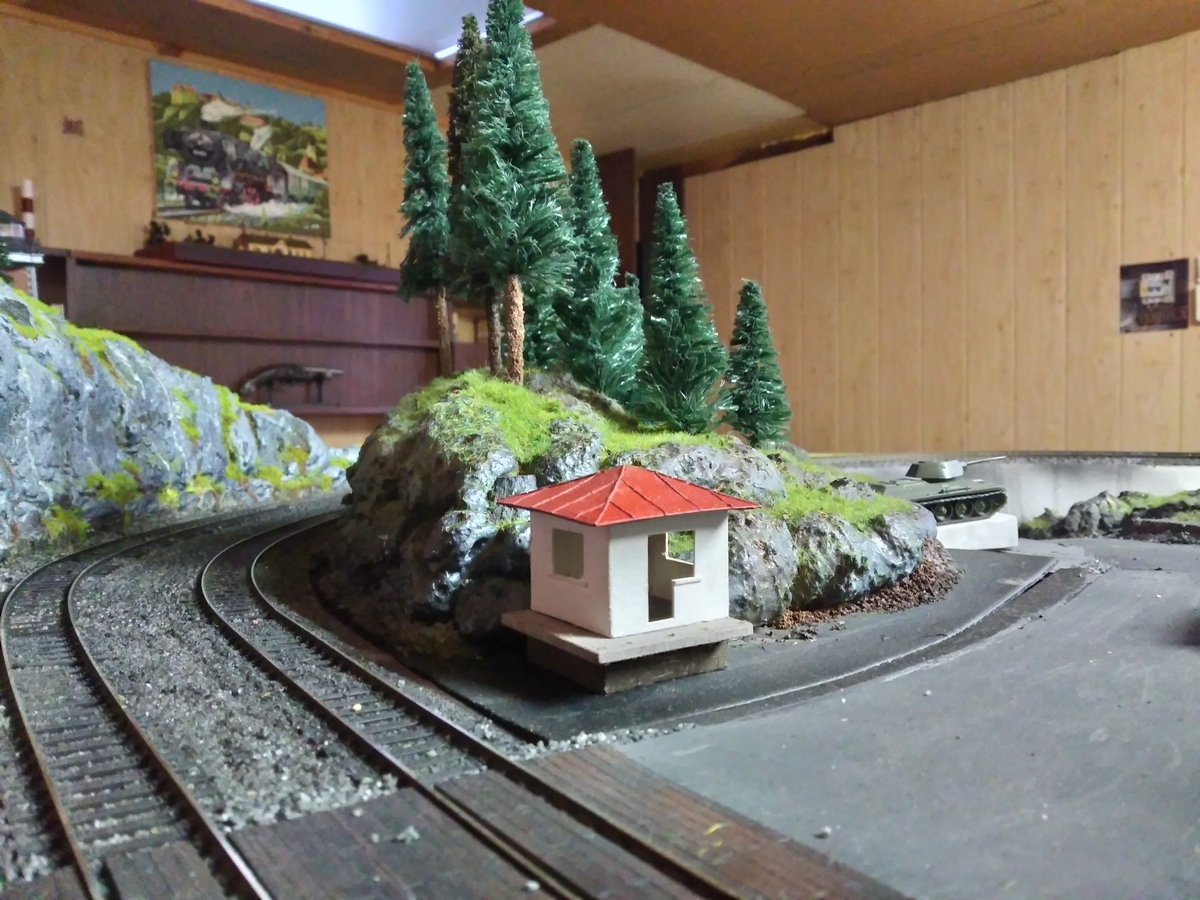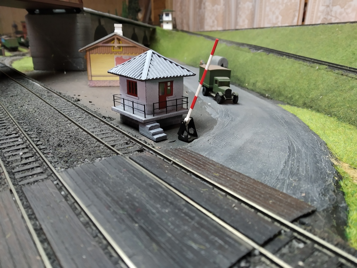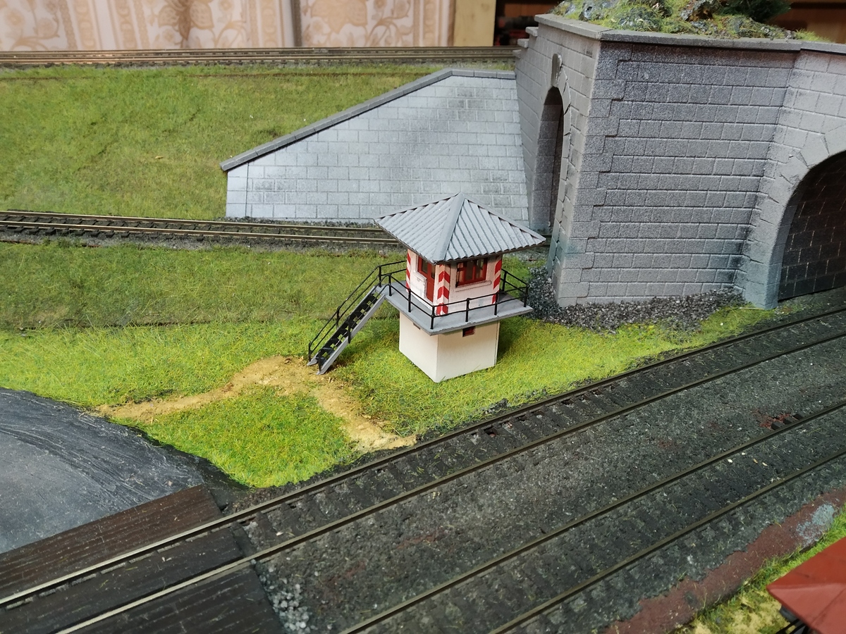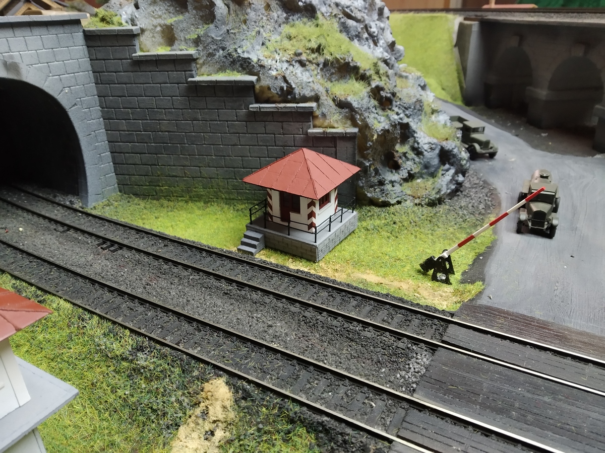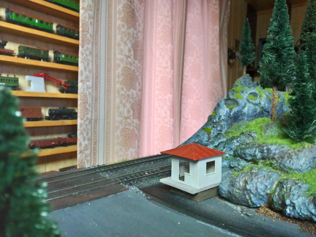 Неожиданно, но с другой стороны совершенно предсказуемо, домик оказался востребованным. Стряхнул пыль, доработал. И сфотографировал на предполагаемом месте дислокации упоминаемый ранее пост охраны тоннеля. Только на моём макете ничего не добавилось. Один наш коллега убедил, что ему всё это нужнее...