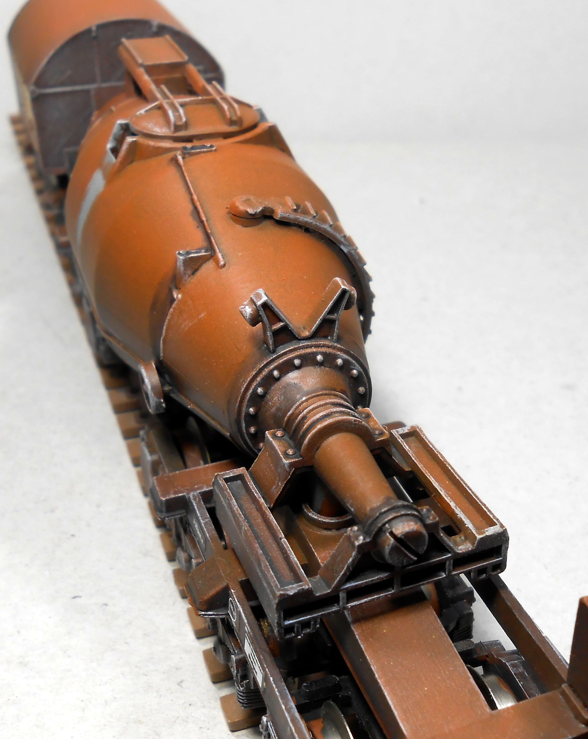 Перекрасил морковным соком,слегка смыл,нанес деки.Грузовику тоже немного перепало. Также были две крайние тележки от тяжелого транспортера M.A.N. Изначально планировал
