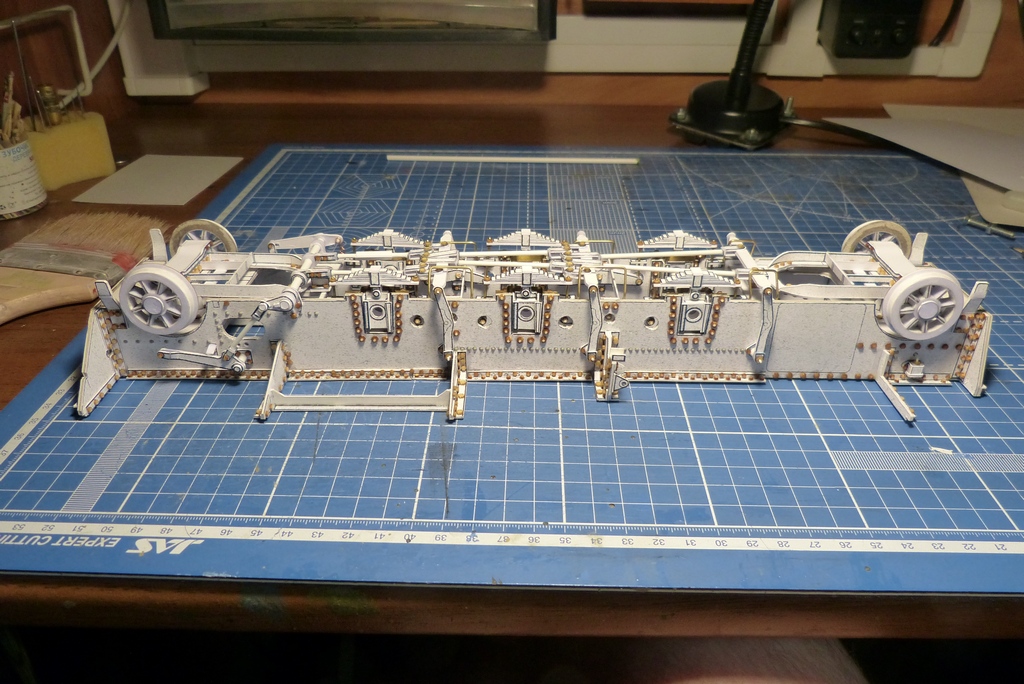 Проклепал и напиндюрил гайки на паровые машины,имитацию болтов вырубал пробойничком из мед иглы и наклеивал на каждую гаечку