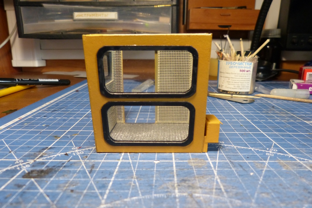 В крыше батарейка светодиод и тумблерок там выше на фотках где будка еще не покрашена я показалT-1000 писав:А как реализован свет? Батареечка или блок и от сети?