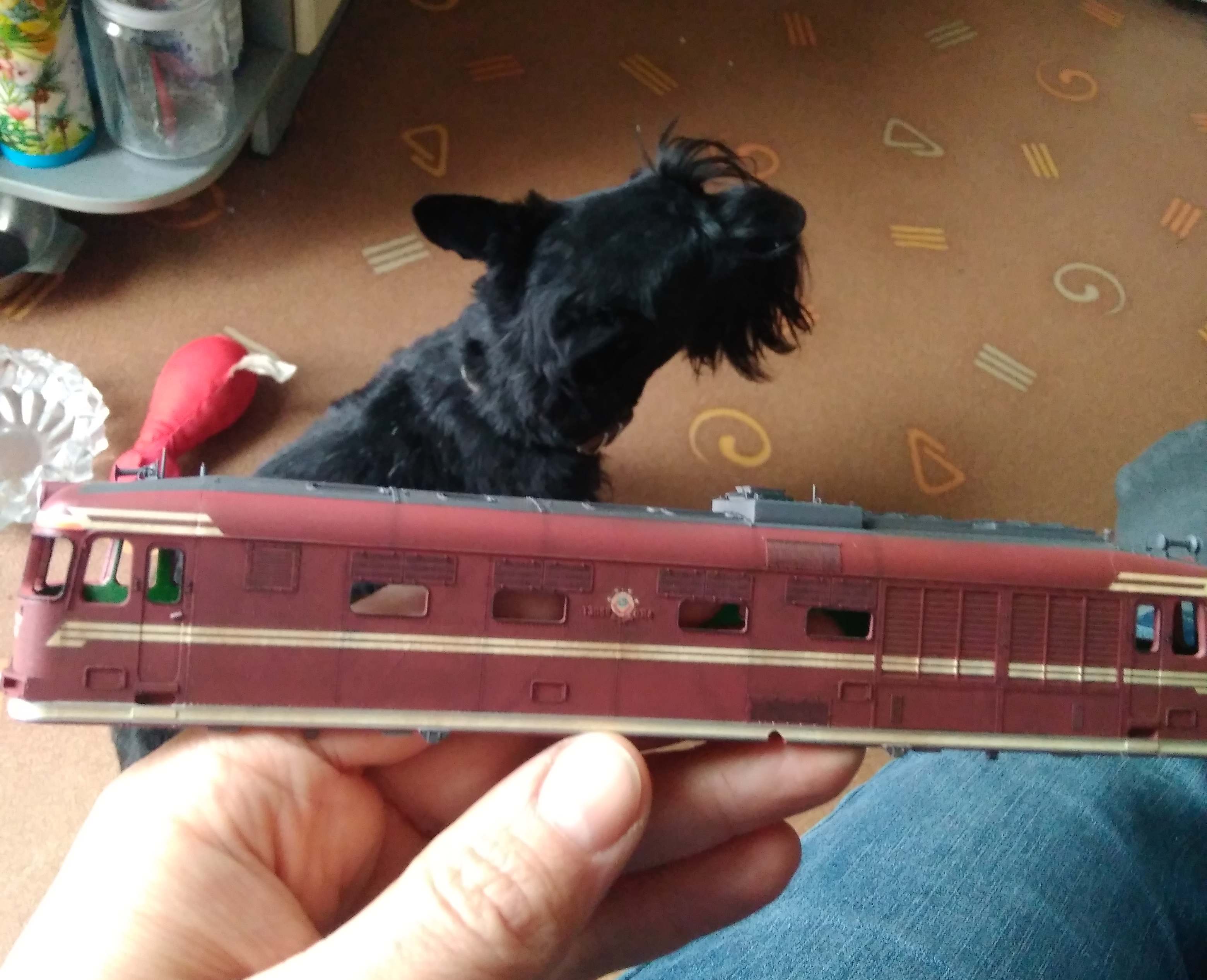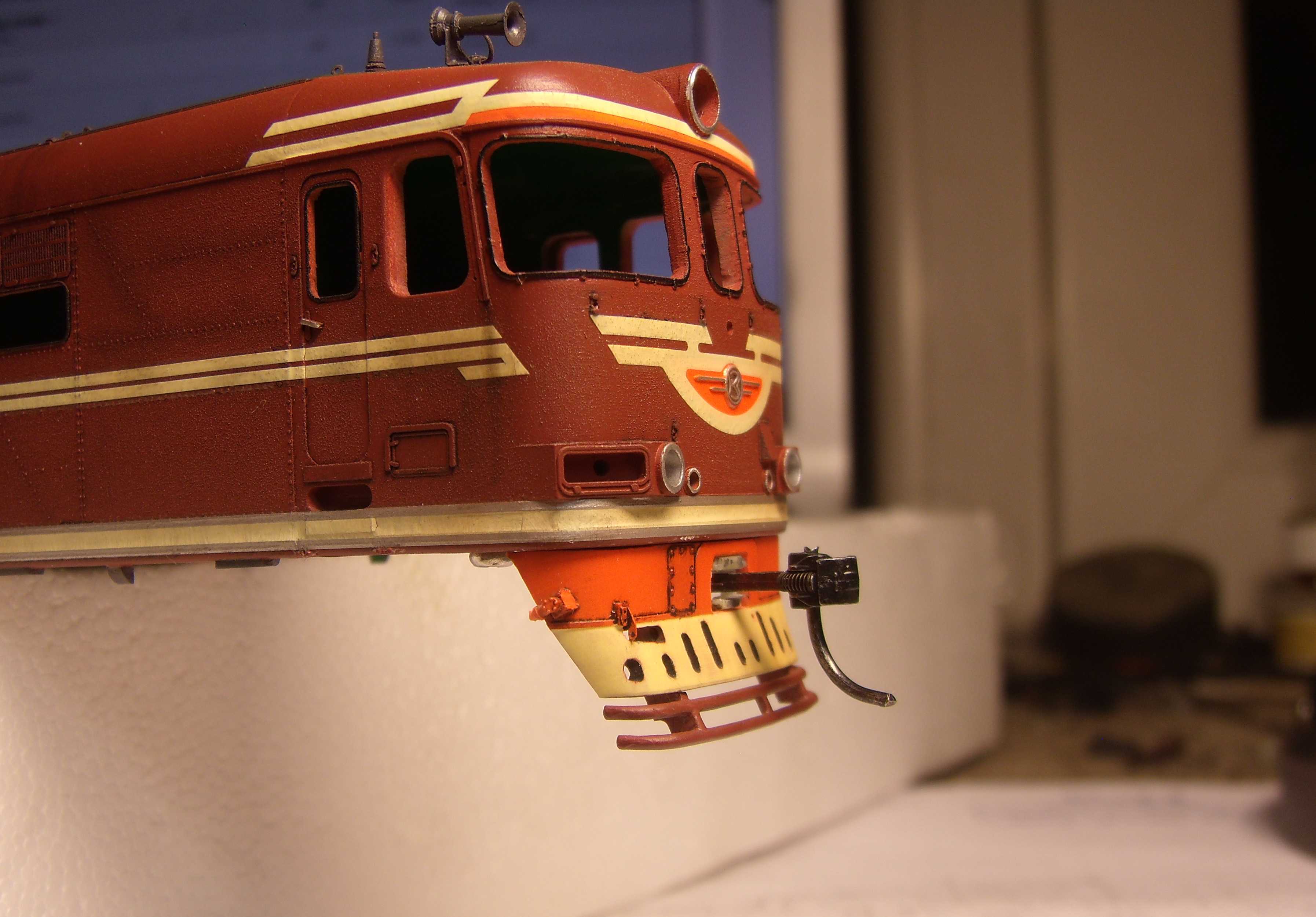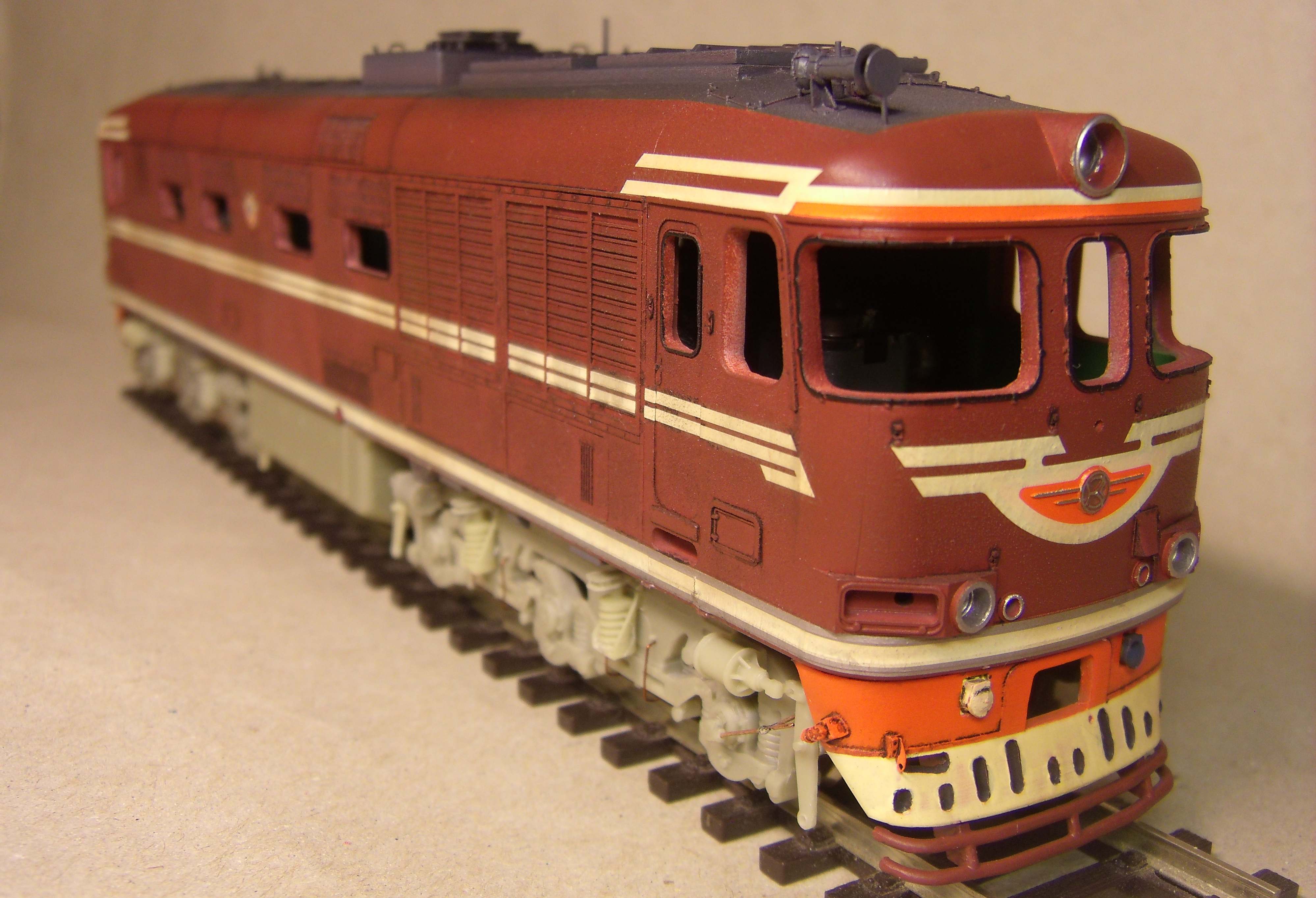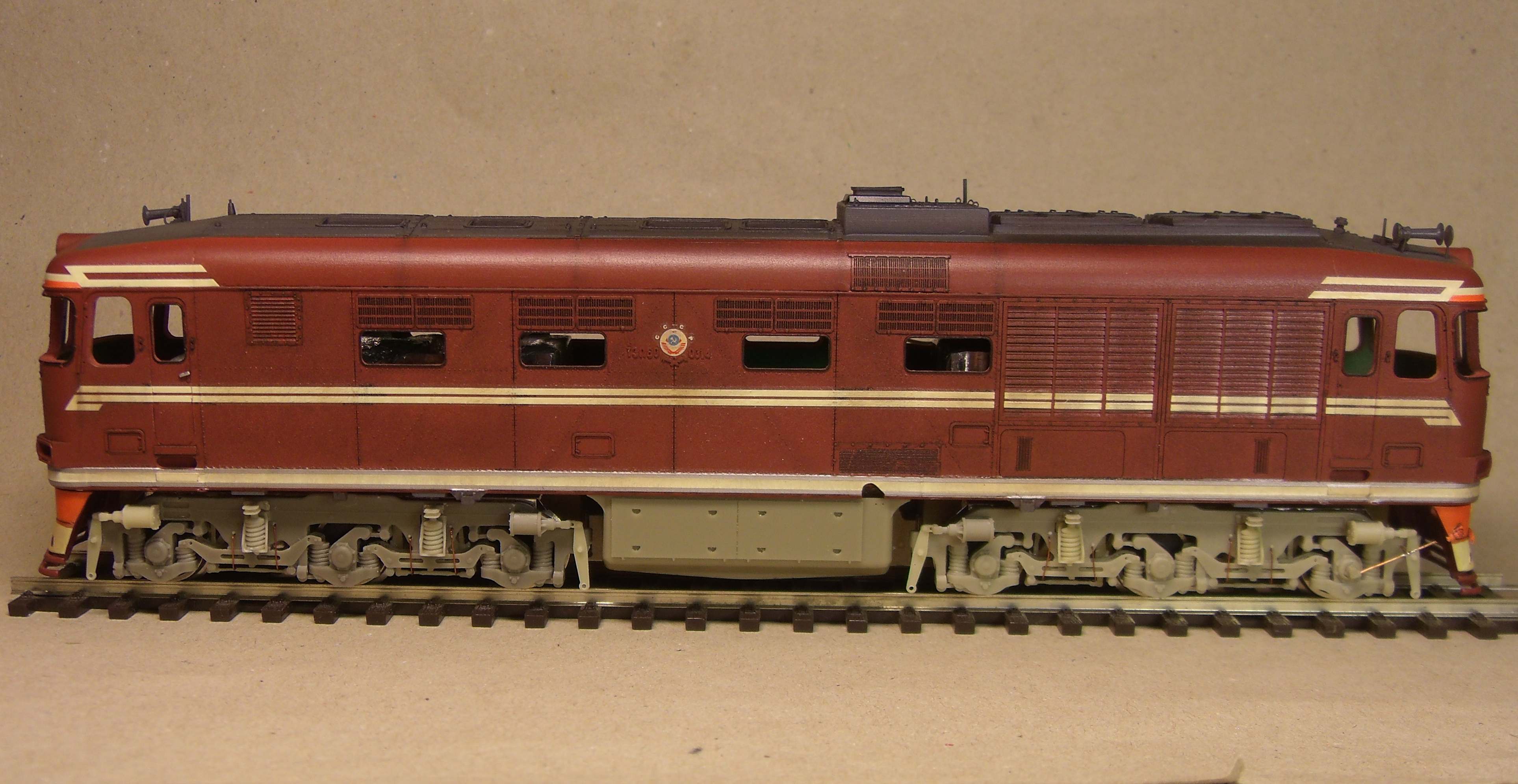 Ставили мы перед собой задачу делать машину "в повседневной эксплуатации", вот как получилось... Лично меня больше всего ошеломляют до восторга потёки с крыши к водостоку, они как бы доказывают зрителю стопроцентно что это не просто выделенные смывкой детали, а именно художественно нарисованные элементы, как на картине, которые связывают всё вместе, и создают ощущение действующего тепловоза...