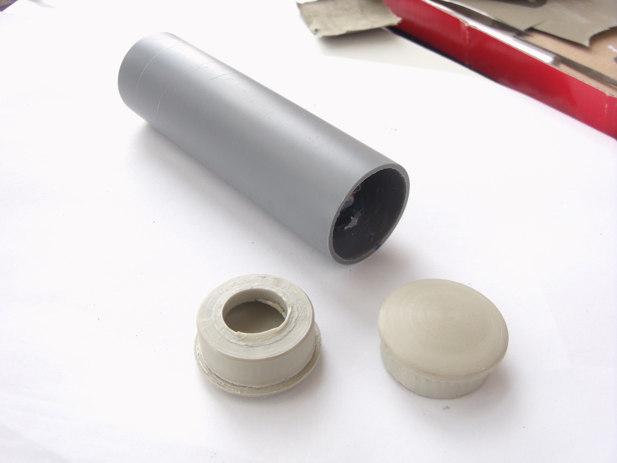 1. Котёл - труба водосточная 30мм, но наружный диаметр у нее 32,3мм, что очееень близко к прототипу в 2,8м. По размерам отличная, но большой недостаток - к ней ничего не клеится, только резиновым клеем приклеил горловину.