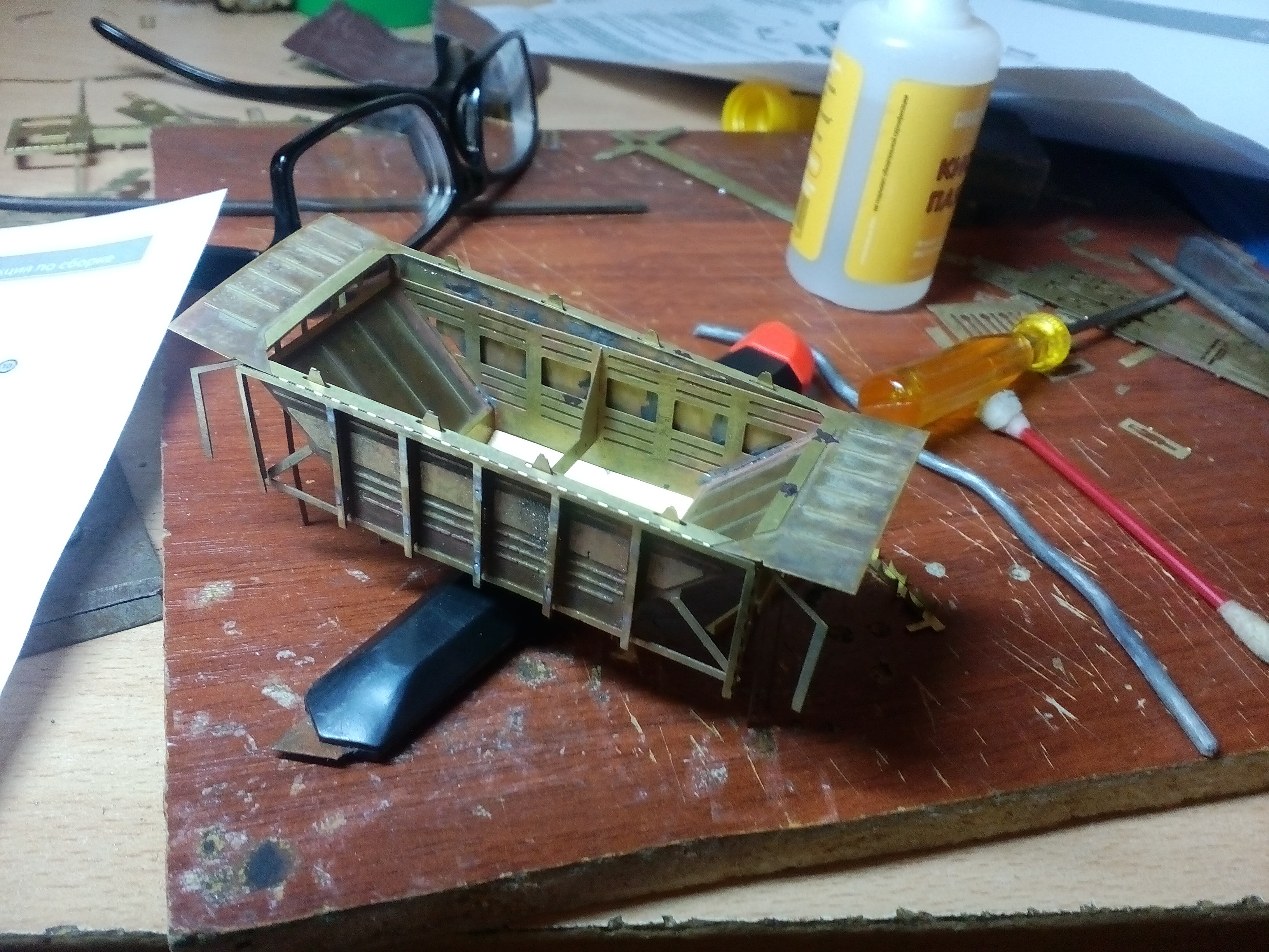 Очень тяжело натягивать боковые стенки , так как они сделаны одной деталью с крышей! И латунь пружинит, надо обжигать.