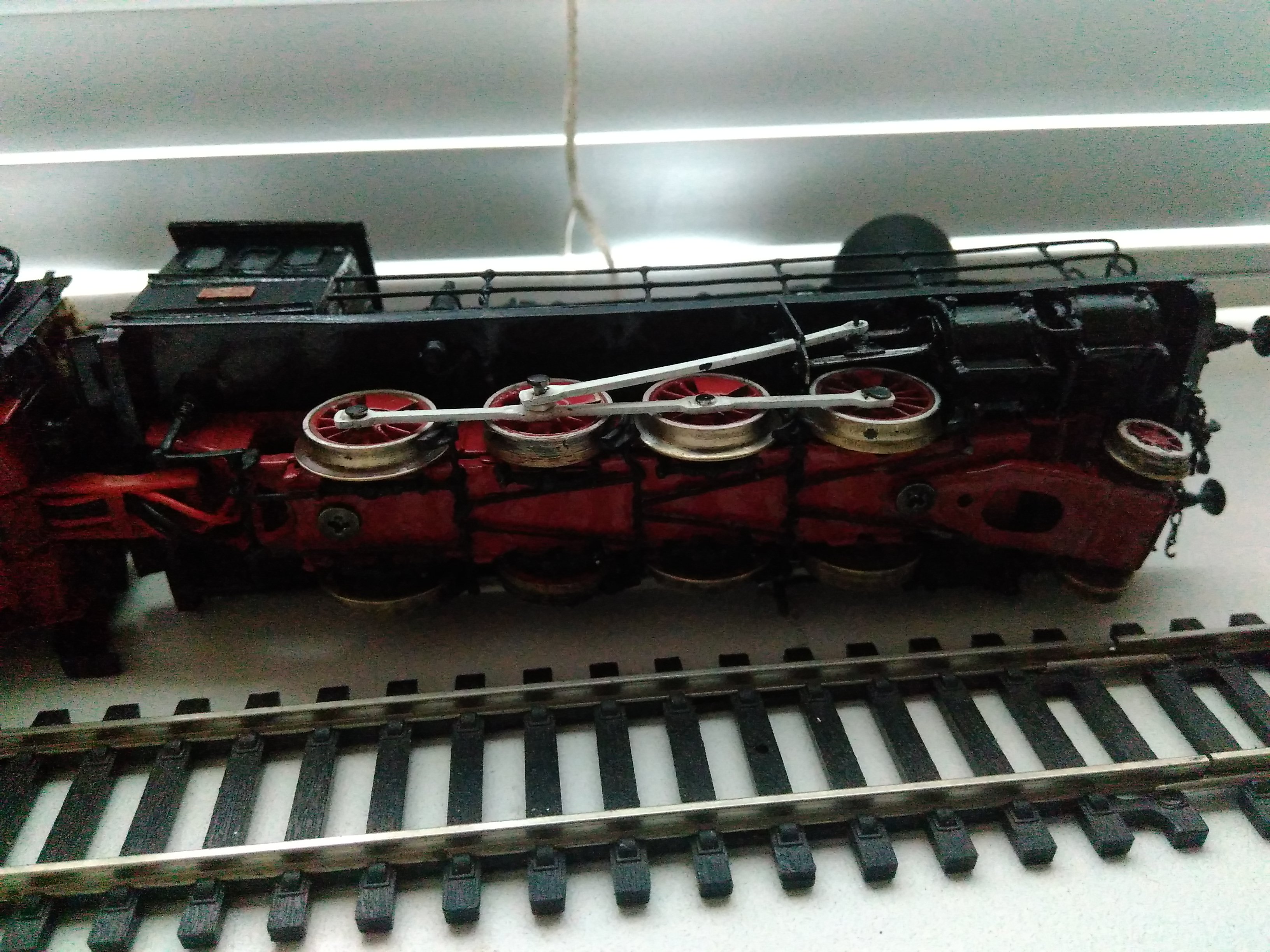 До покраски стрелки проходил хорошо, после не испытывал. После покраски немного были проблемы с первой парой колес. Решилось уменьшением реборды. Это связано с тем, что колесная пара стоит там где она должна быть, а реборда крупней( пришлось и делать прорезы в машинах и уменьшать реборду после покраски. Также на колесах количество спиц доведено до соответствующего вместе с эксцентриками.