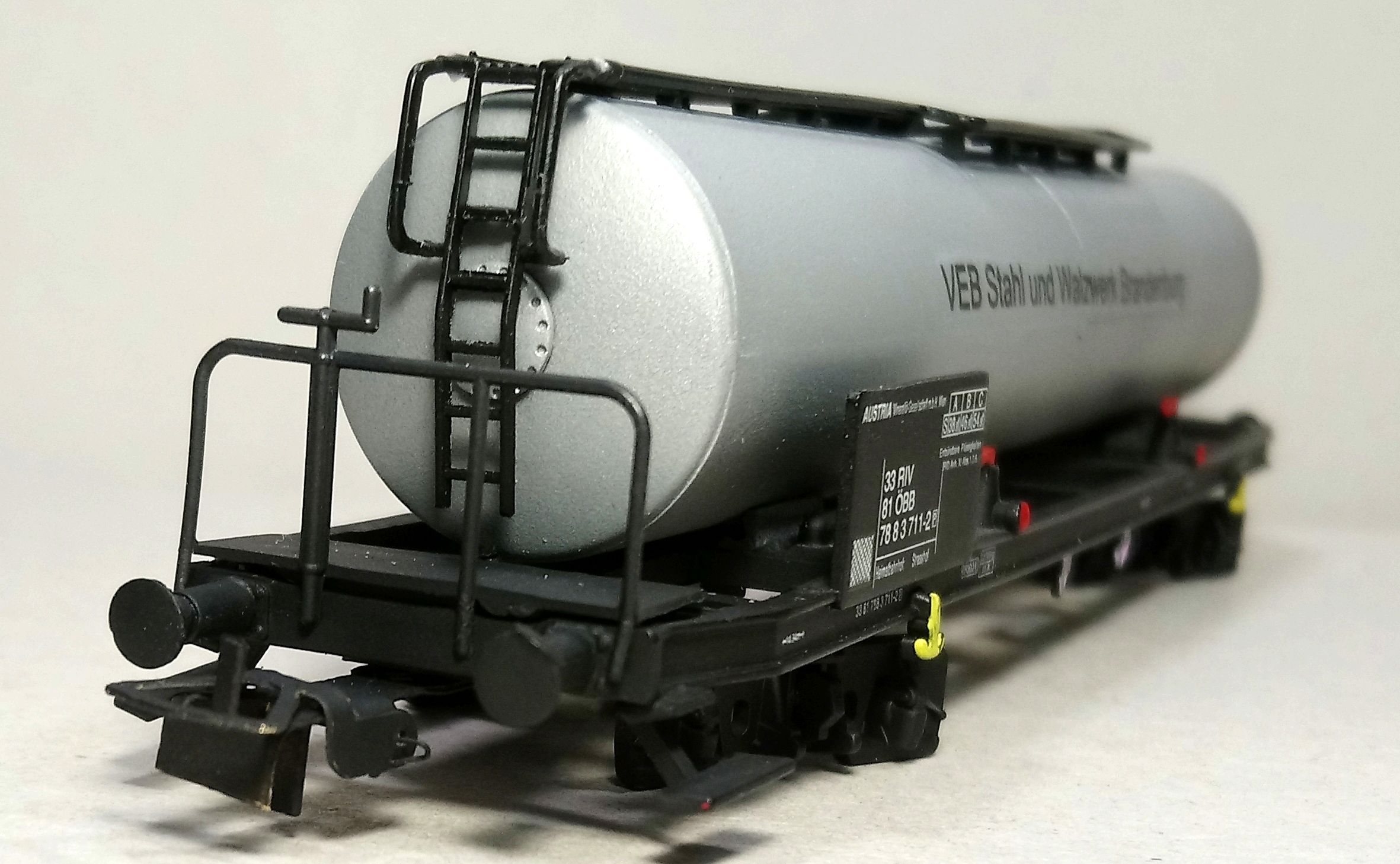 Здесь видно три метода.Слева направо по каждому вагону:сухая кисть,заливка серой краской,аэр.