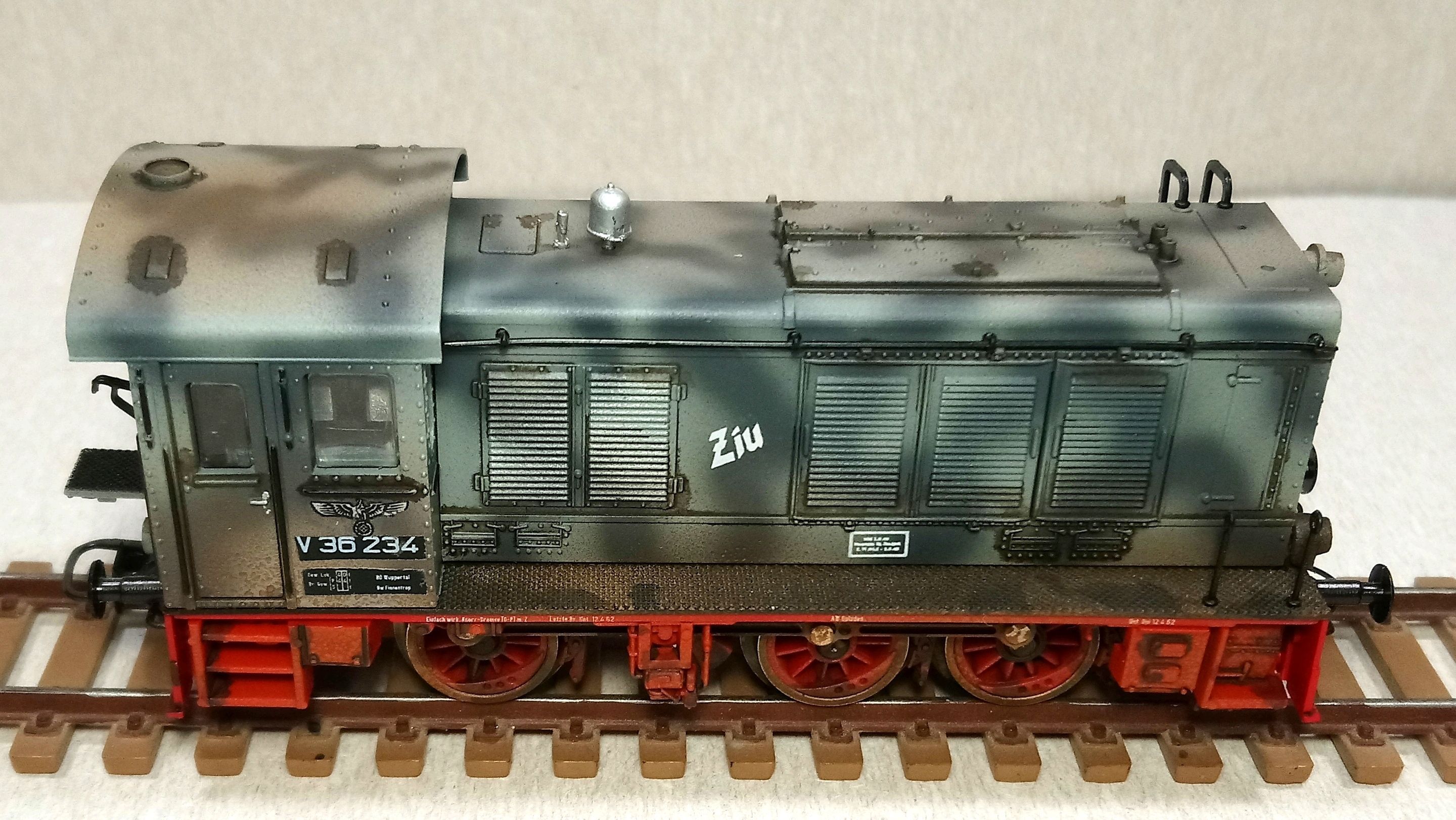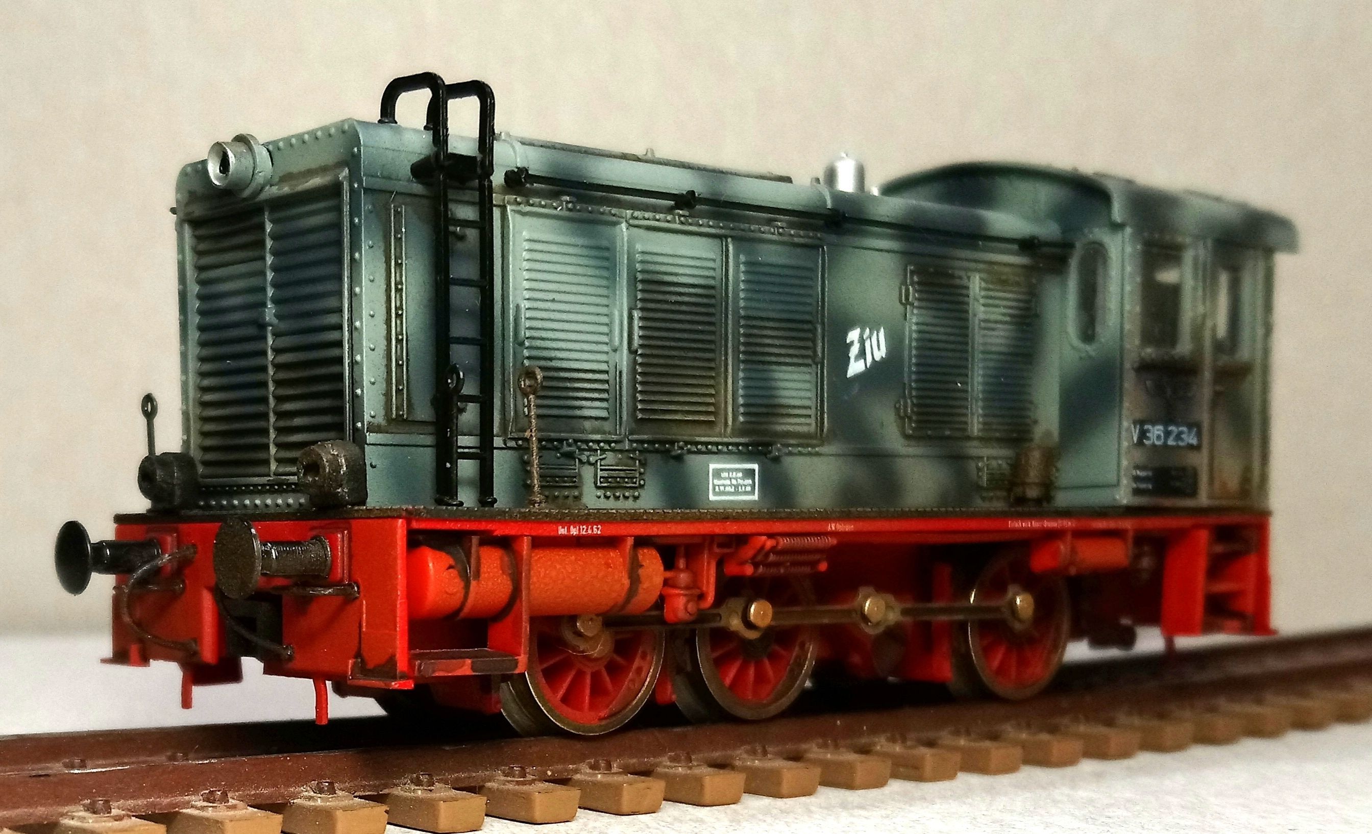 Спробував зістарити кілька локомотивів. Один при цьому перефарбував у військовий локомотив.