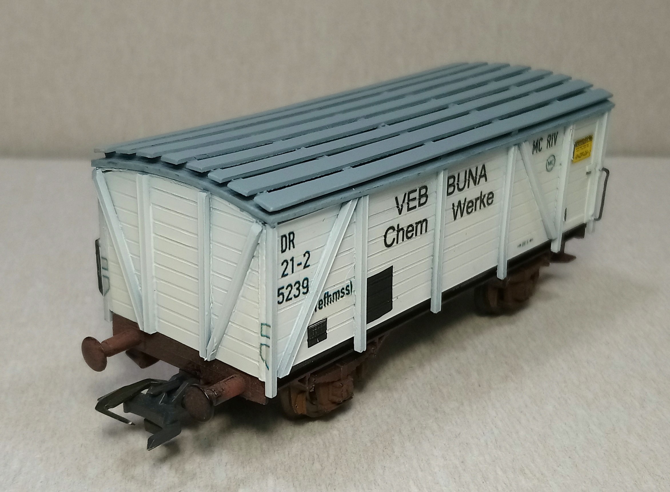 Від себе додав до даху термоізоляцію, бо вагон вийшов доволі бідненький на деталізацію. Тому він став візуально вищий.Фарба нітро, декі щопопало. :lol: