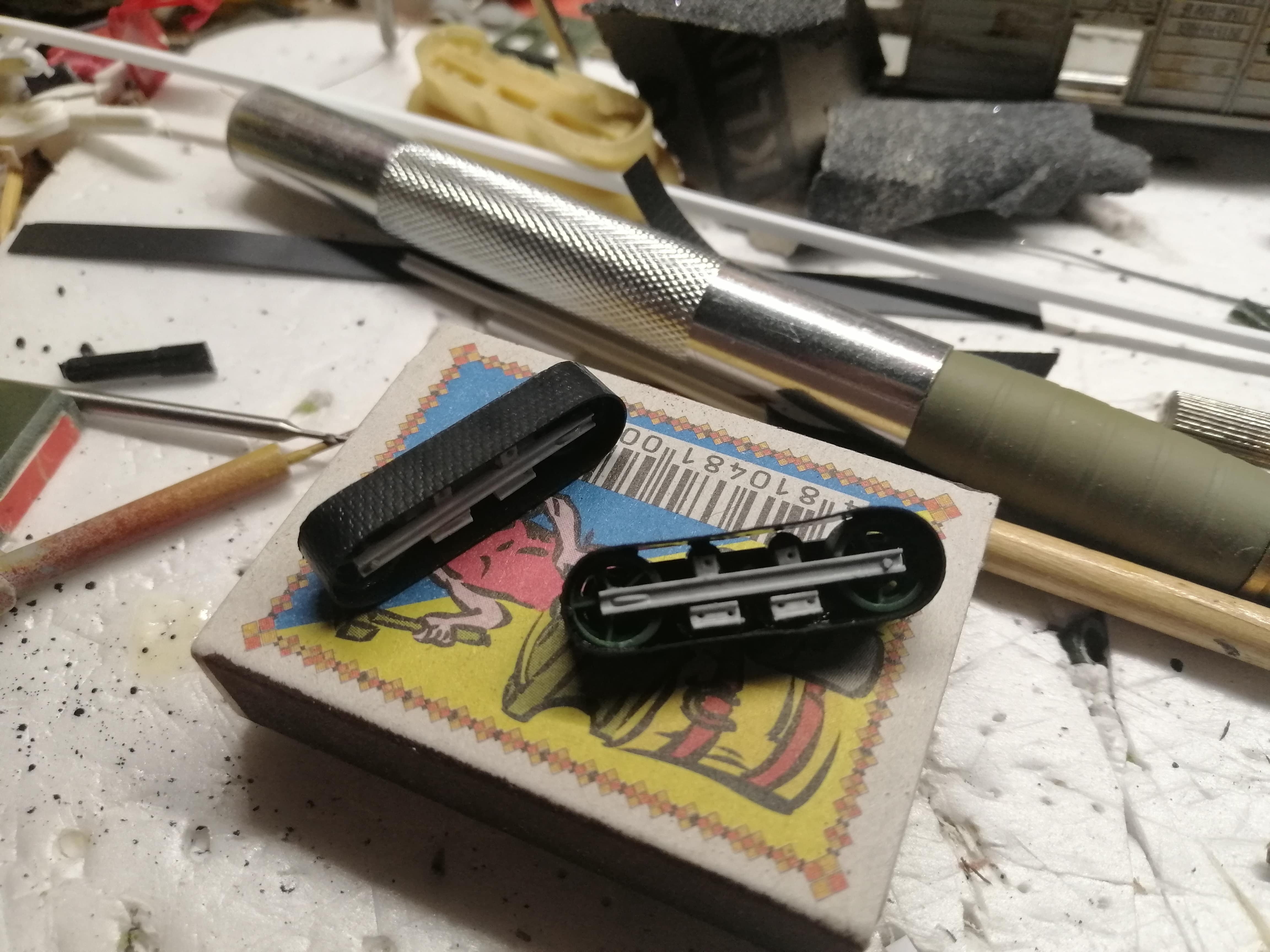 Прикупив трохи профільних полістирольних прутків і набір пастелі . Зачесались руки попробувать з них щось запилять. Тут ще й муза на чай завітала. Короче ближче до справи. З чергового одноразового шприца родив дві невеликі цистерни для дизеля. задув, попробував зробить сліди протікань