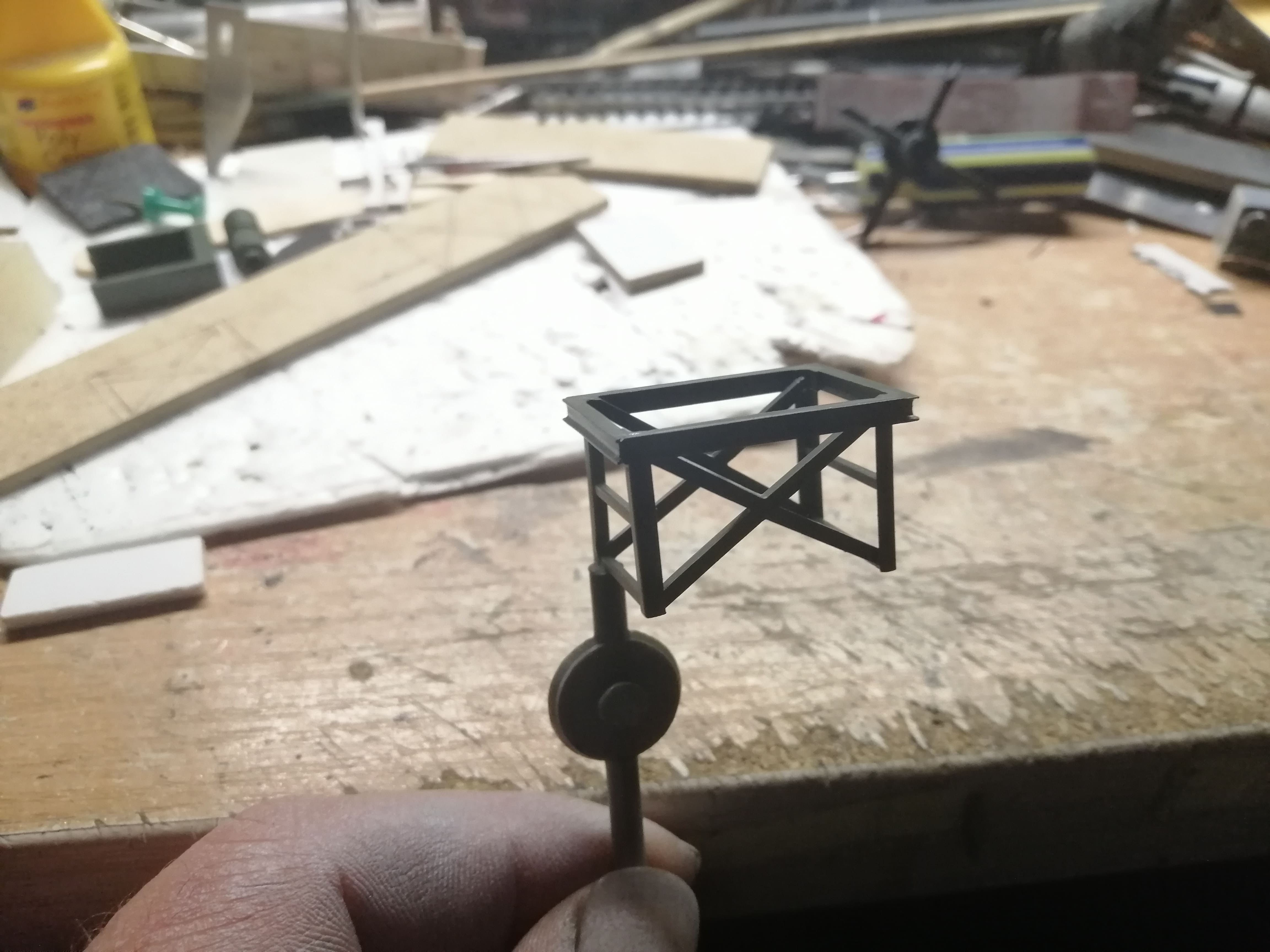 Соорудил поворотную платформу с подиумом для кабины и саму кабину. грунтонул\покрасил.