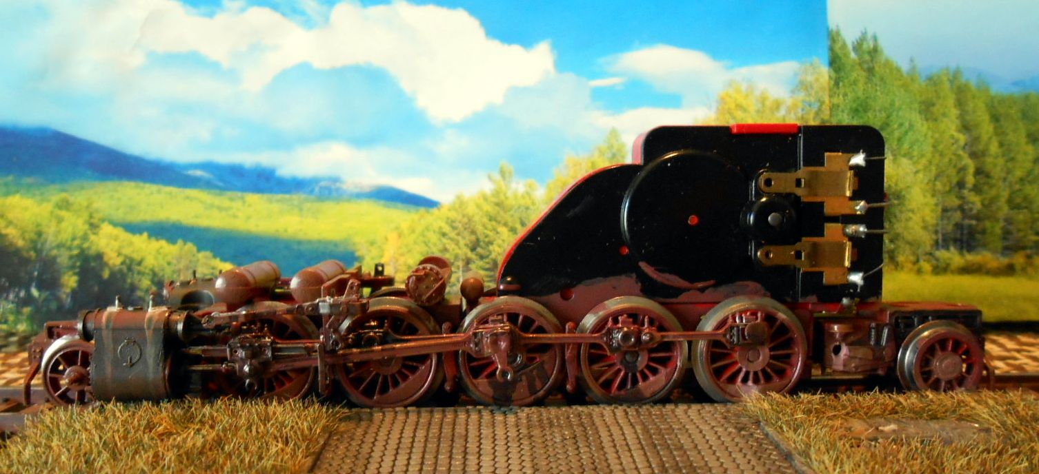 На макете в тупичке валялся корпус паровоза,сильно состареного. Захотелось сделать его снова ходовым.При чем в том же брутальном