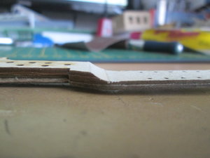 приклеил с другой стороны еще слой. теперь сборка второй продольной рамы, а потом на передних концах сделать плавный переход (то уже завтра)