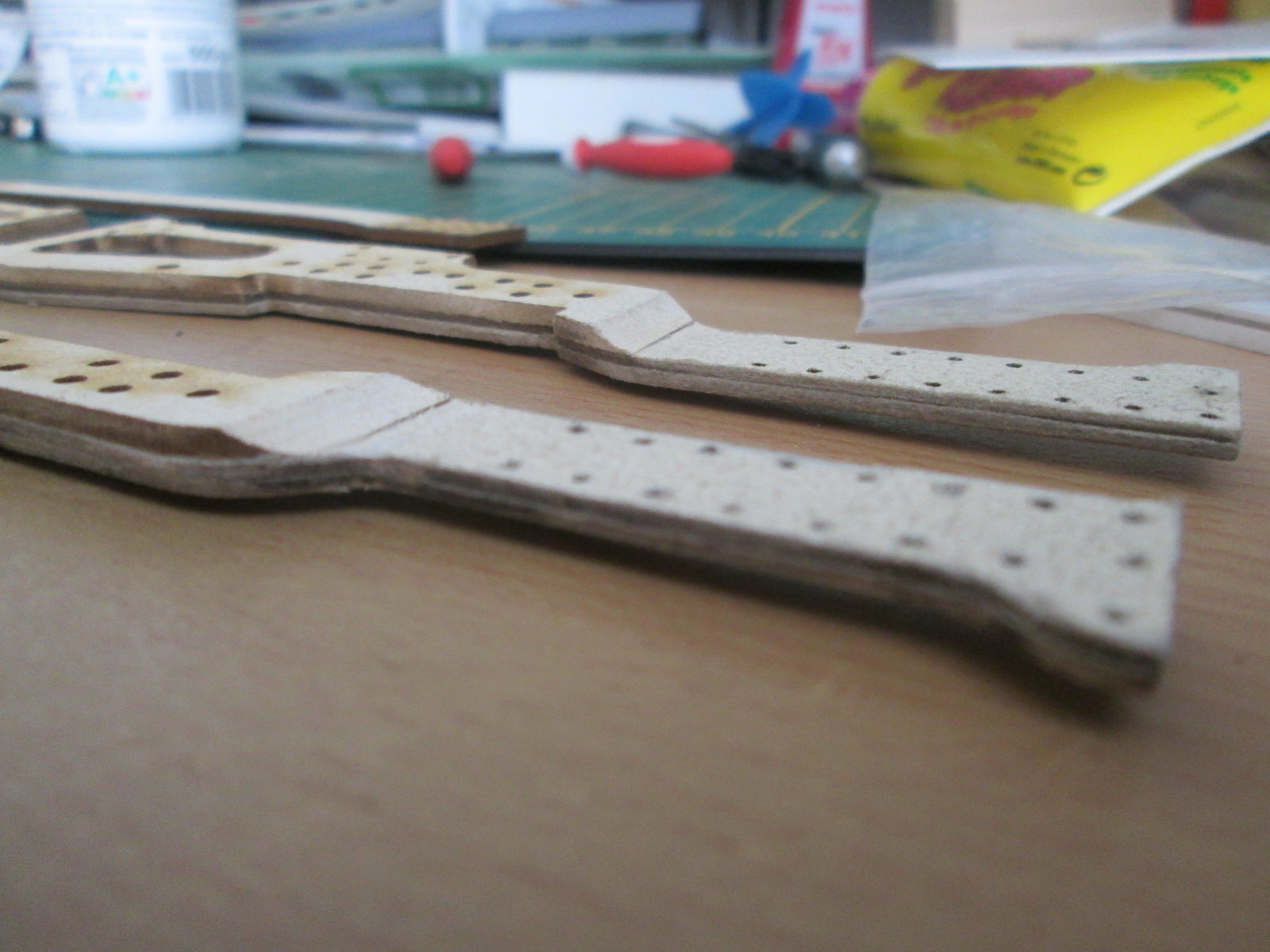 вчера все таки нарезал детали межрамных уголков, вот что вышло. фото с процесса клейки