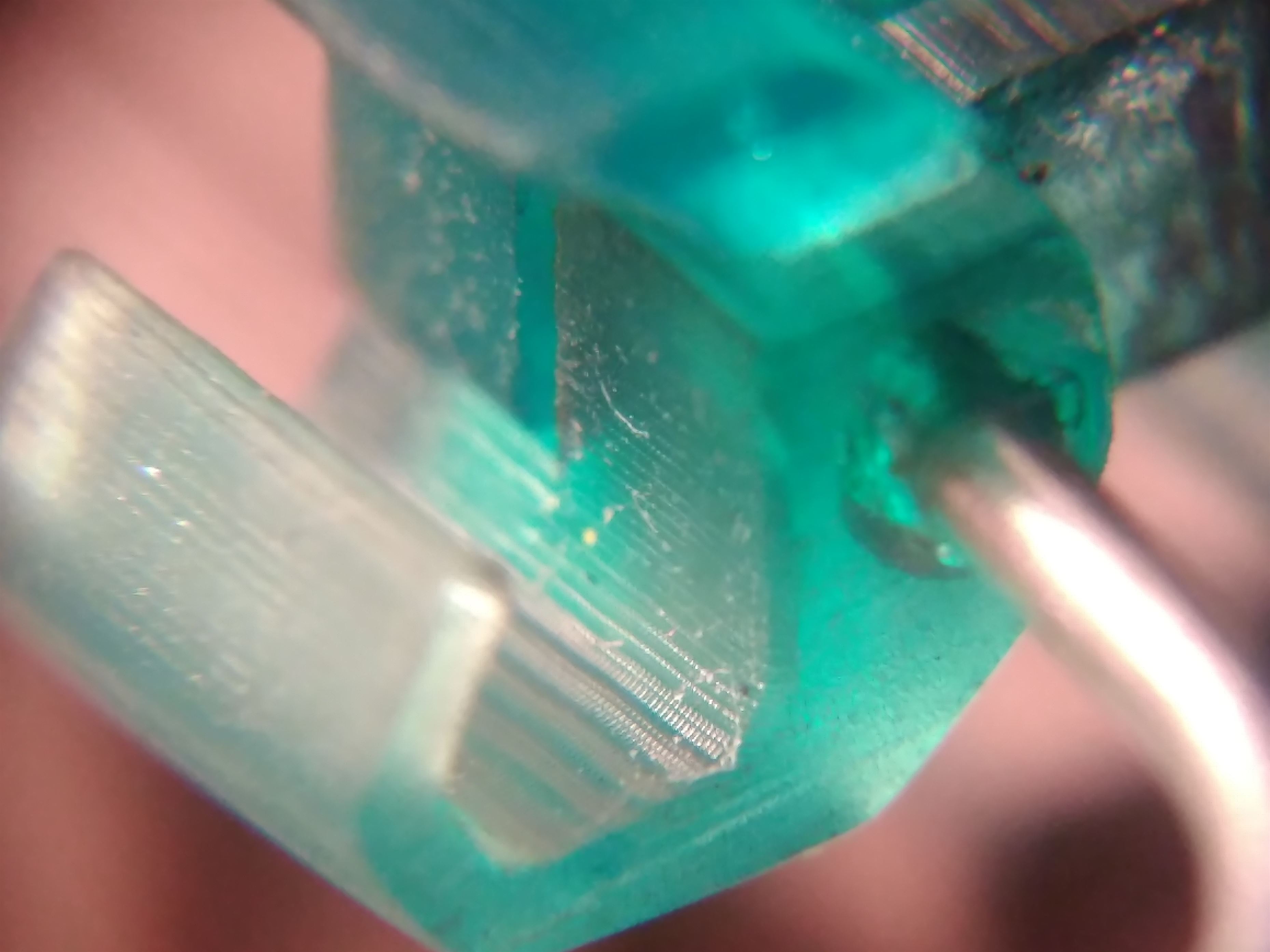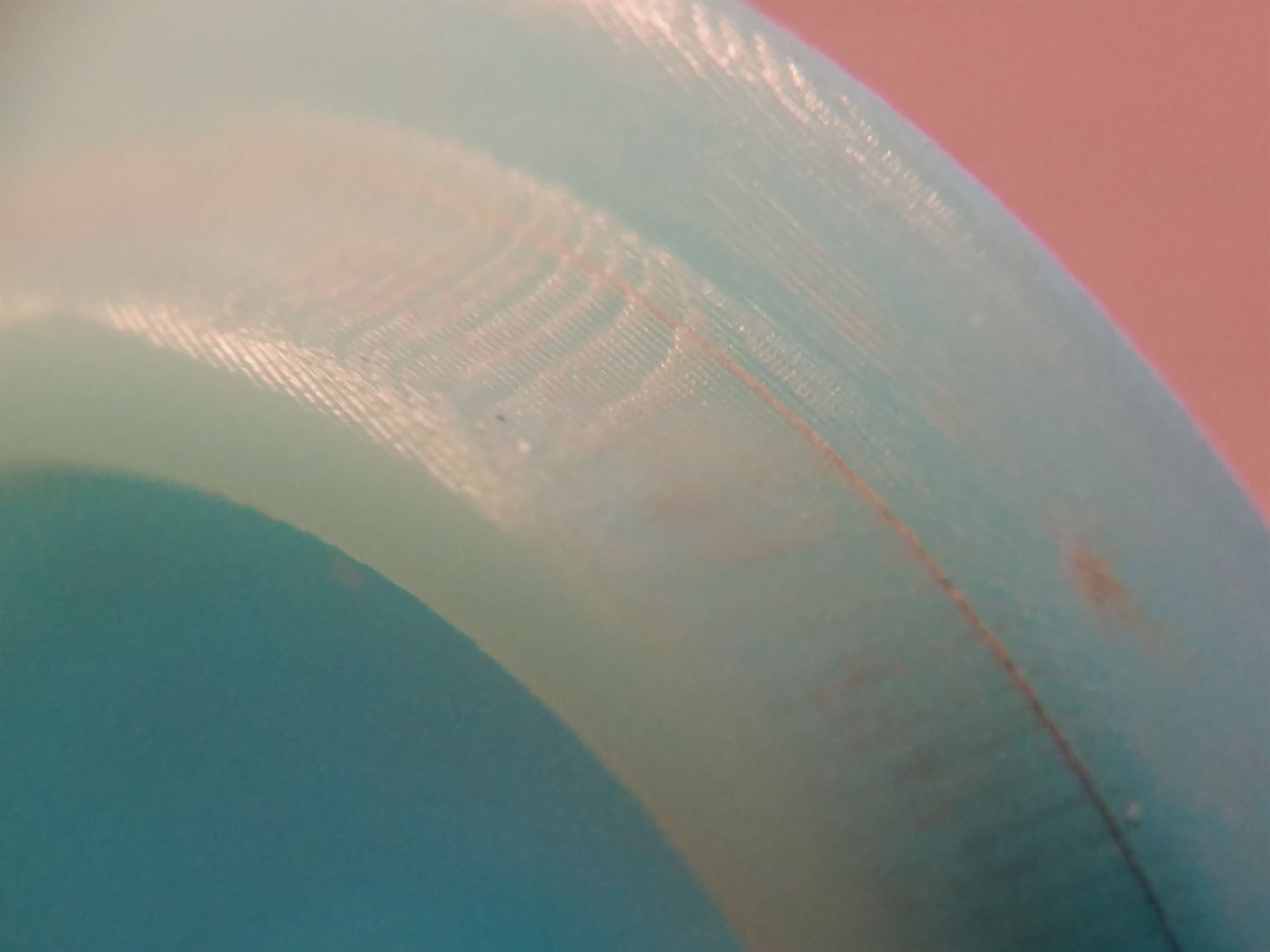 Грязные пятна - это попытка покрыть грунтом, который не держался на фотополимере. Грунт отмыл, мелкие пятна остались. Она же в грунте.