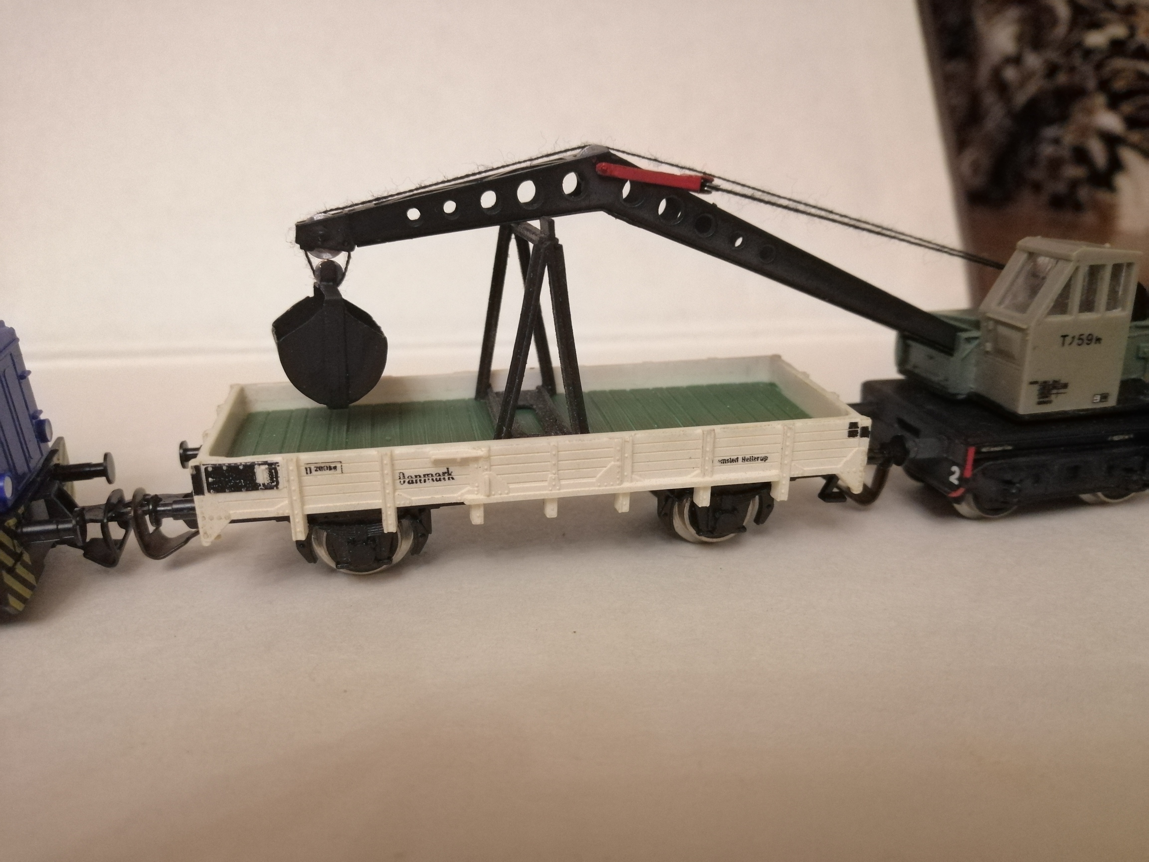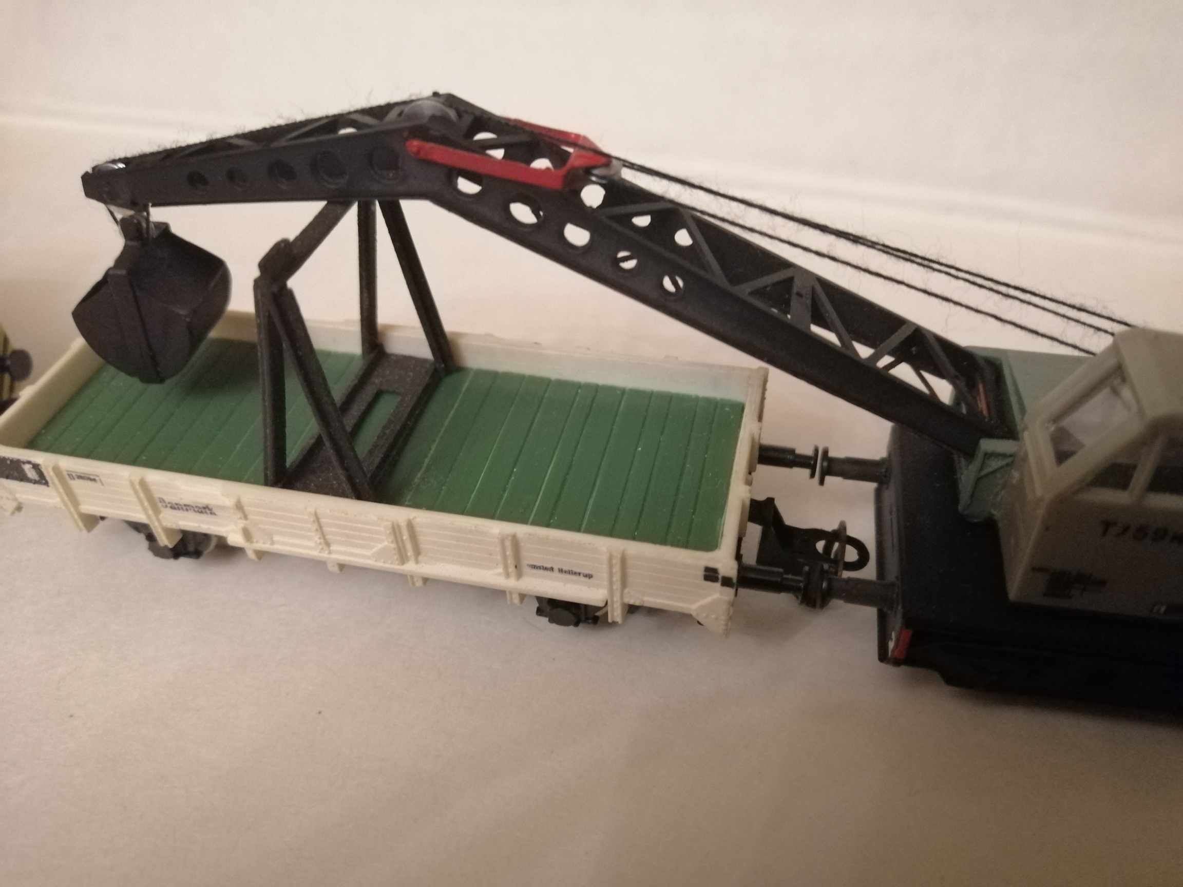 Идем дальше. Кран у мемя уже есть но таскать его не удобно стрела болтается в повороте - выход нужна платформа. Порывшись в загашнике нашел раму вагона -осталось найти борта для платформы. готовой платформы не оказалось пришлось кулибиничать самому. после изготовления бортов сделал дно вагона. На раму приклеил пластину свинца для утежеления.Все можно собрать платформу. Чтоб стрела не болталась в повороте из профиля евергрин сделал сьемные козлы.