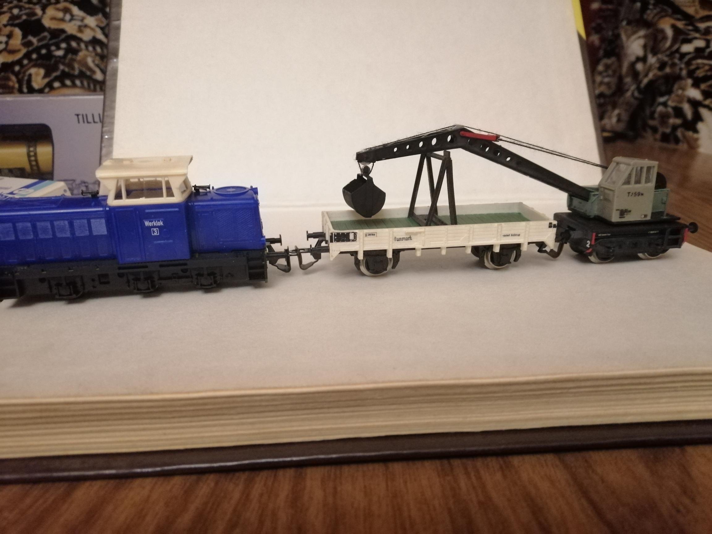 Продолжаю тему. Подогнали както набор КИТа. Оказался НО короче тема не моя. Лежал долго пока в руки не попал журнал TT KURIER N10\2007 стр.32 а там фото Bleichert schinen-kran T159. кстати модель делает фирма PERMO. Короче вот оно и ручки пошли вандалить набор. полтора дня потребовалось на сборку крана и стрелы чтоб опускалась и поднималась и пайку ковша из кусочков медной ленты еще день на телегу с поворотным основанием. после сборки оказалось что при опущеной стреле при повороте вбок кран заваливается с рельс. Пришлось разбирать и полдня ломать голову чтоб рассовать кусочки свинца во все сколь придатные щели для противовеса. Фото того что получилось