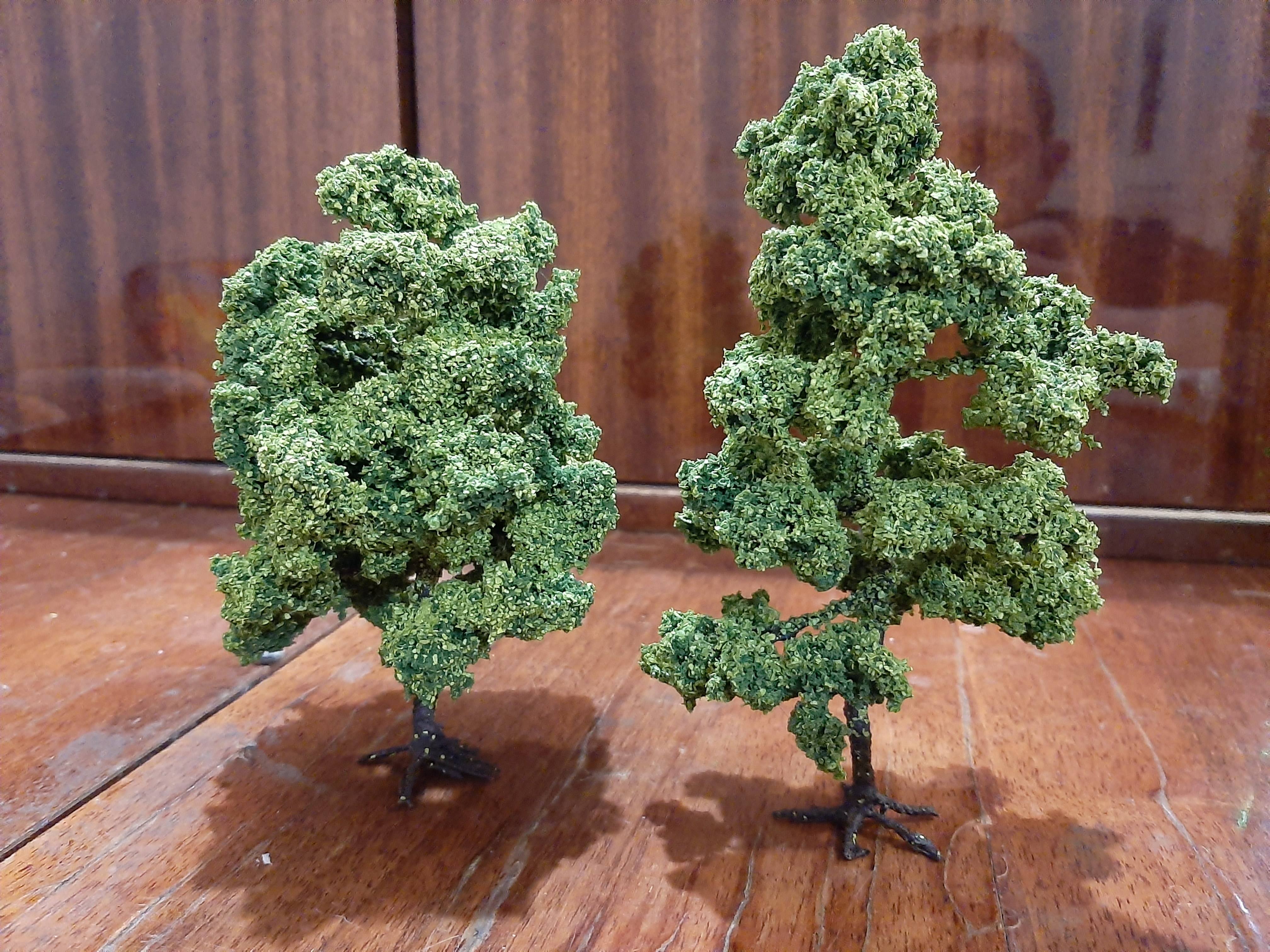 Березки бы доработать. Я бы советовал после накрутки ствола обсыпать мелкими опилками на клей, а потом красить. А также меньше синтепону наклеивать. Сам сделал только со второго раза как надо. Вот последние модельки моих берез