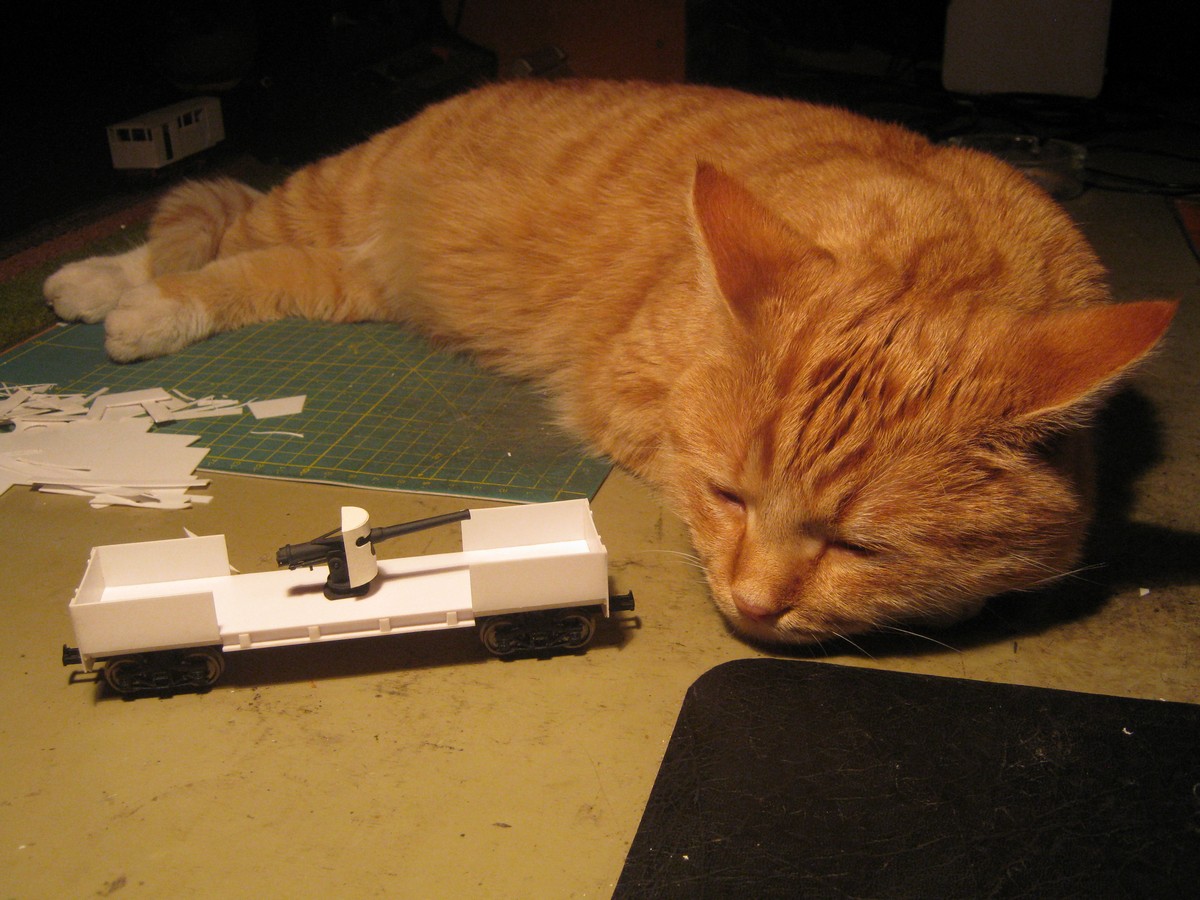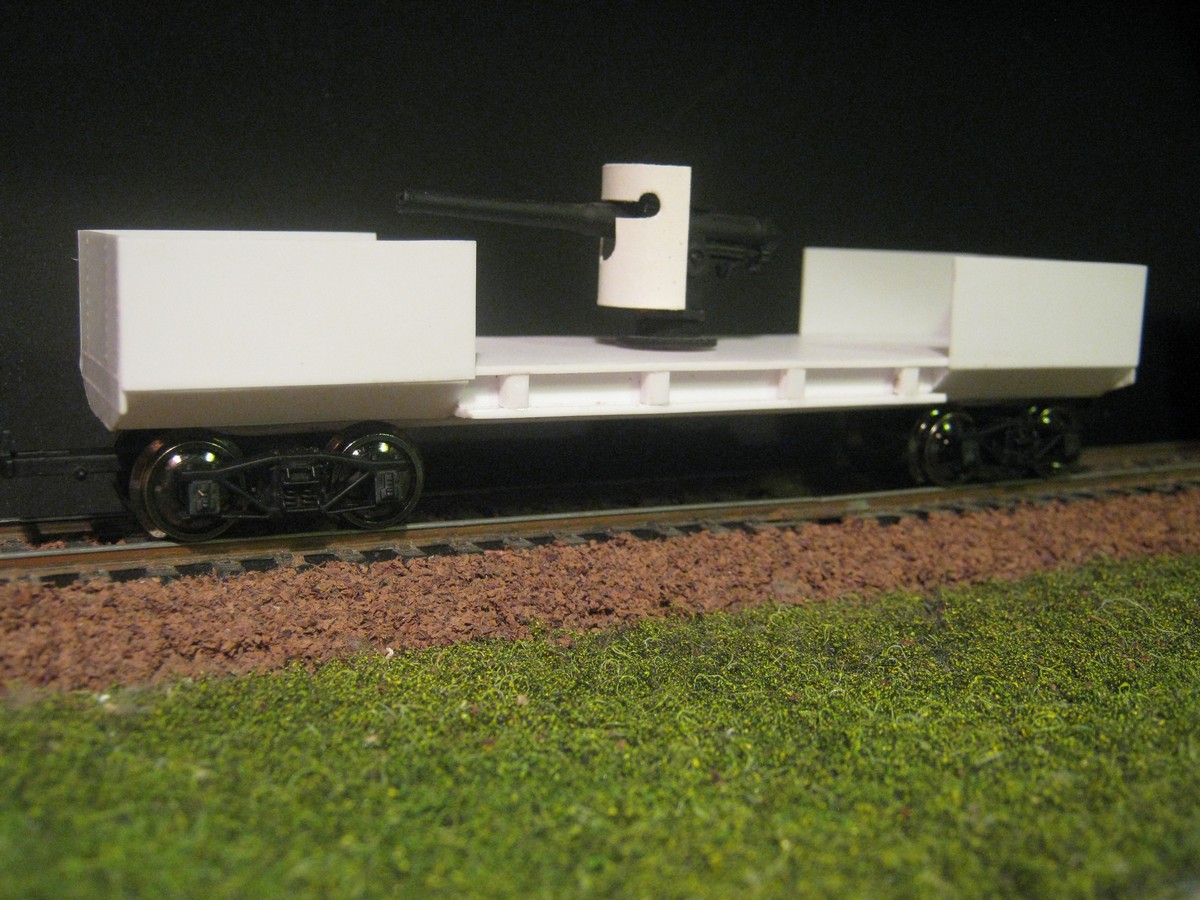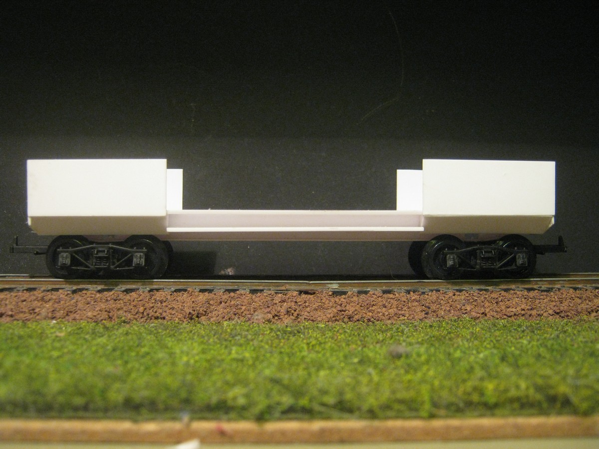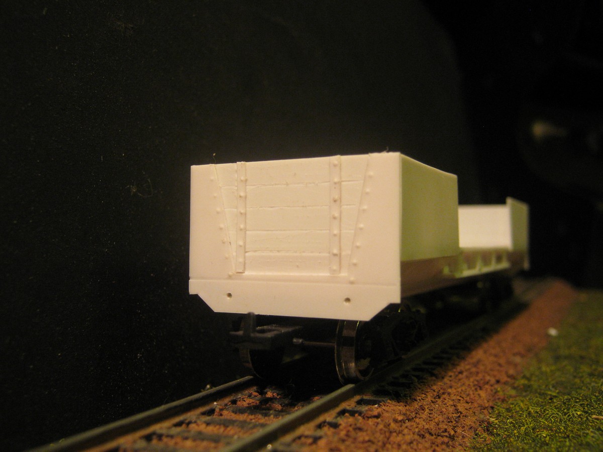 Торцевые борта буду переделывать. Фотографии почти всех бронеплощадок, созданных на базе этого полувагона, свидетельствуют, что торцы были полностью зашиты металлом, но именно моделируемая бронеплощадка имела вполне штатный борт с удалёнными досками.