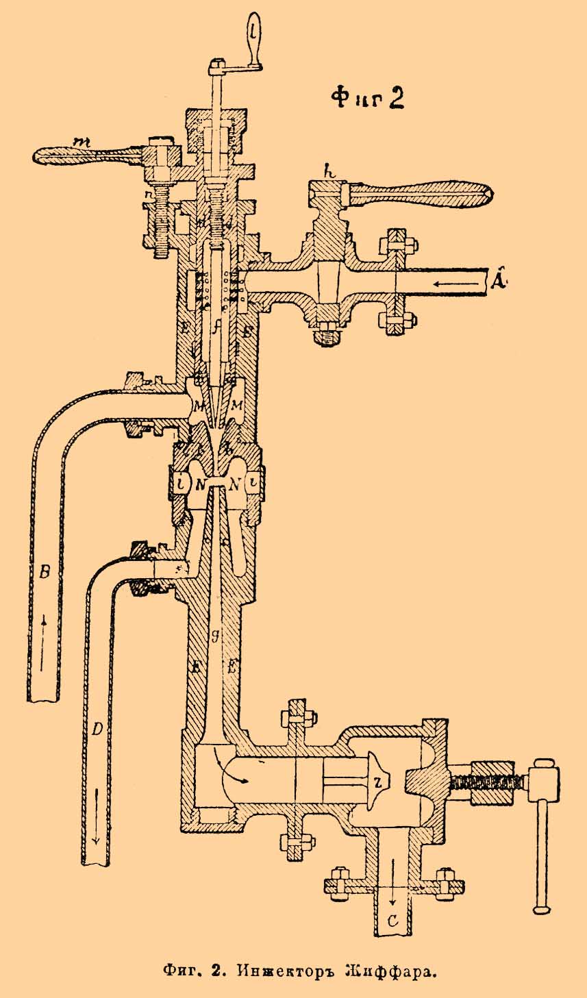 На паровозах более позднего выпуска они уже были в будке, в частности в Ов. Скорее всего на данном паровозе нечто вроде инжектора жиффара или может быть его модификации или нечто подобное. Но в любом случае управление паровозом было очень сложное.
