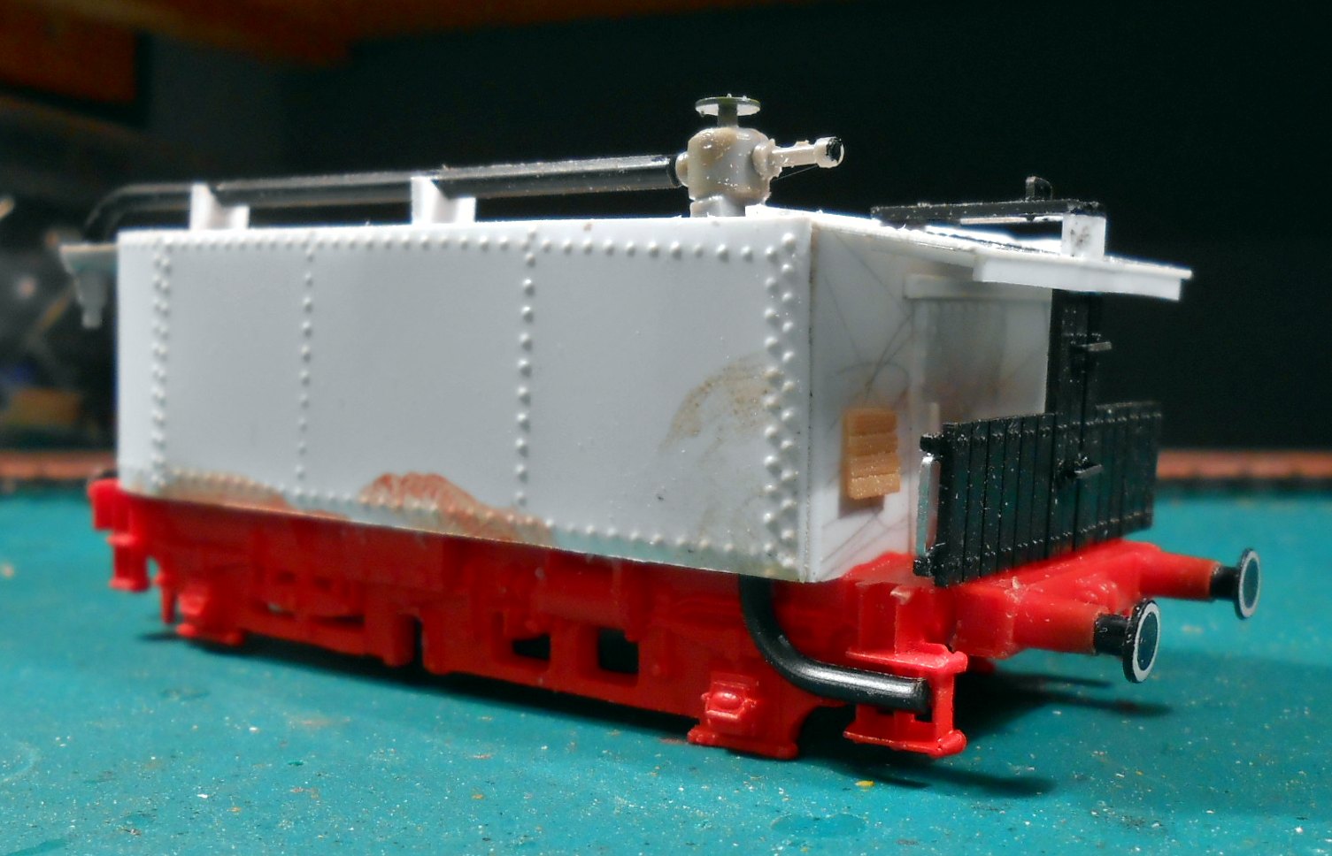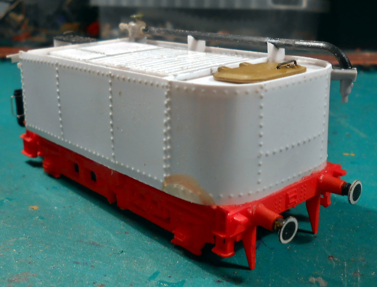 Первенец в этой эпопее старый(списанный мной из поездной работы)тендер от Лимы. Дремель в лапу и понеслась.Отрезал угольный ящик(по сути сделал его пустым) и