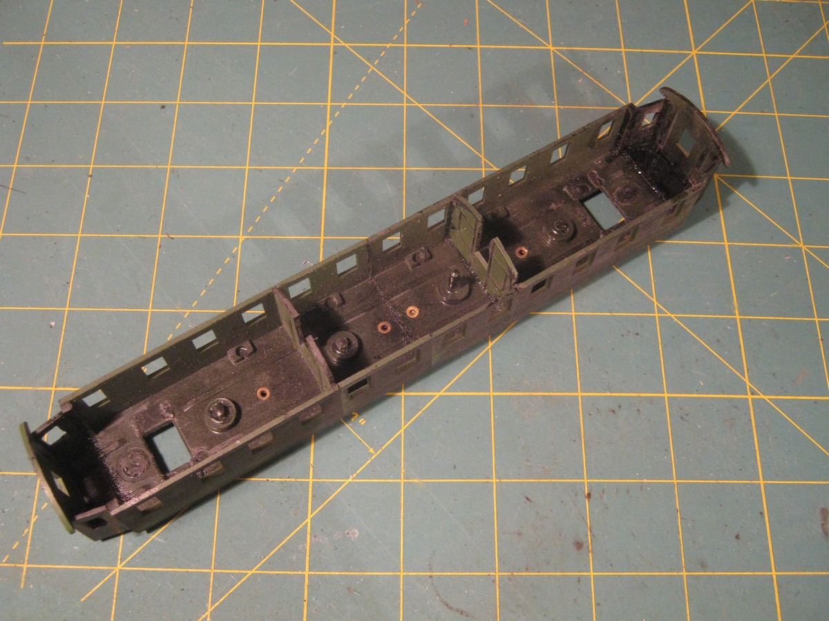 Дома сразу подкатил тележки от убитого эрзац-вагона Rowa, приобретённого только ради этих самых тележек. Далее без комментариев - обычный цикл работ, известный всем моделистам.