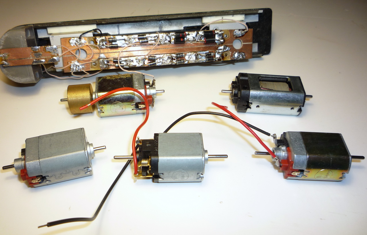 Далее - движки. Достаточное количество роковских, гутзольдовских и других. Будут ставиться гутзольдовские, вот такие (нижний ряд): Они есть немного разные по внешнему виду и характеристикам, размер ± 3мм. Маховики есть куп-ленные отдельно, или можно снять с других двигателей.