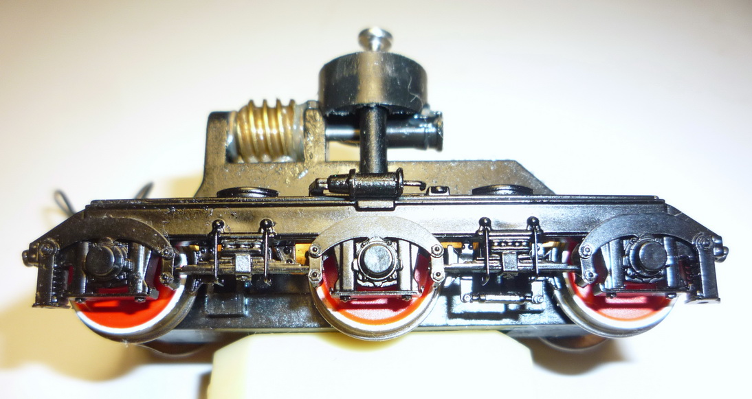 Это тележки от мелкосерийной китайской модели тепловоза DF. Тележка собрана из кучи травла и доп. деталей типа имитации головок болтов, гаек и т.п. Всё это видно на фото. Так что повторять тяжко. Уйдёт куча времени и денег, которых уже потрачено до хр… и больше на закупку комплектующих и остальное производство.