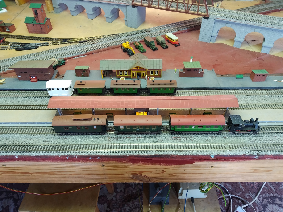 Теперь состав древних вагонов имеет законченый,полноценный вид.
