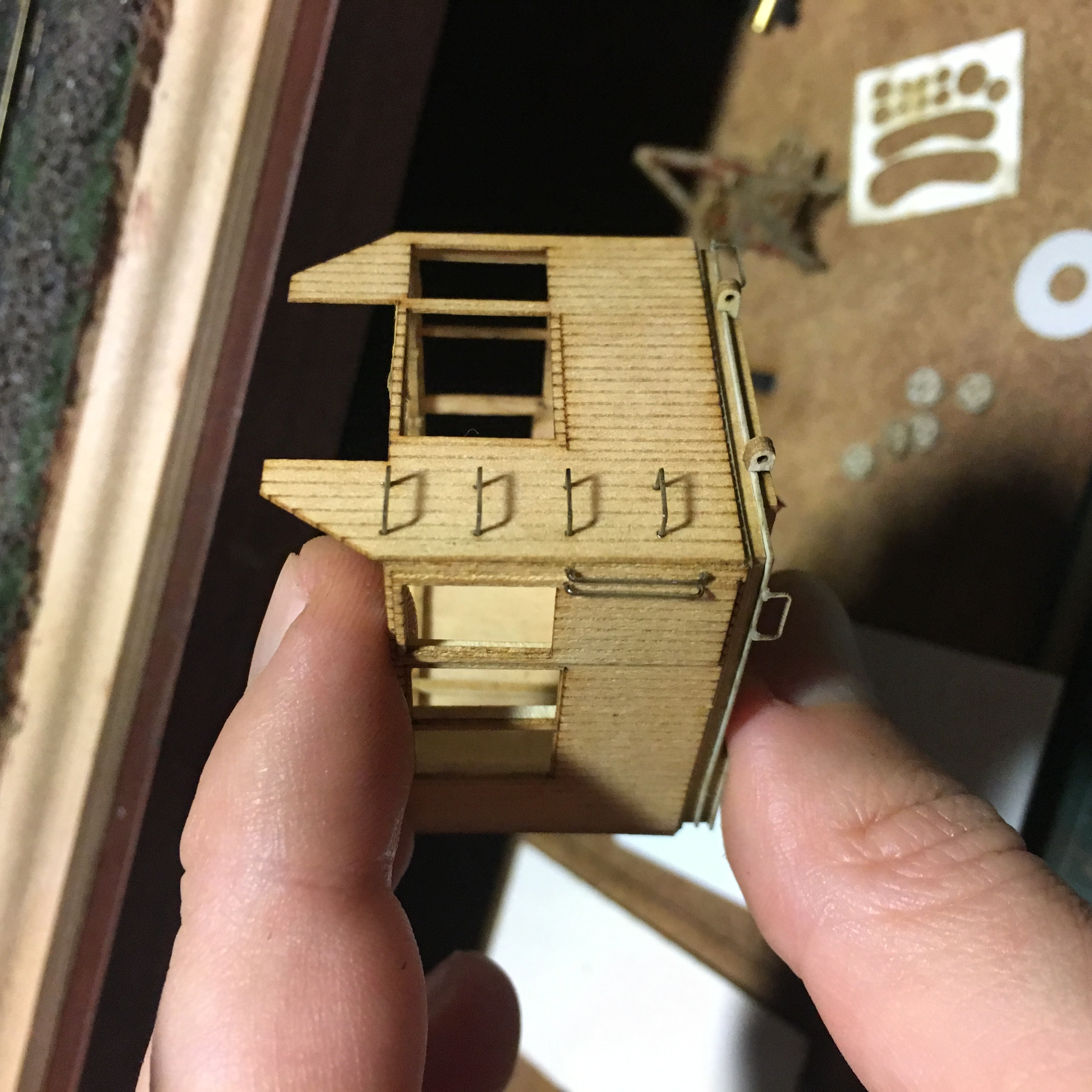 Начал с крыши и всяких поручней по кузову. Часть была утеряна, часть не успел установить, когда была активная фаза постройки: