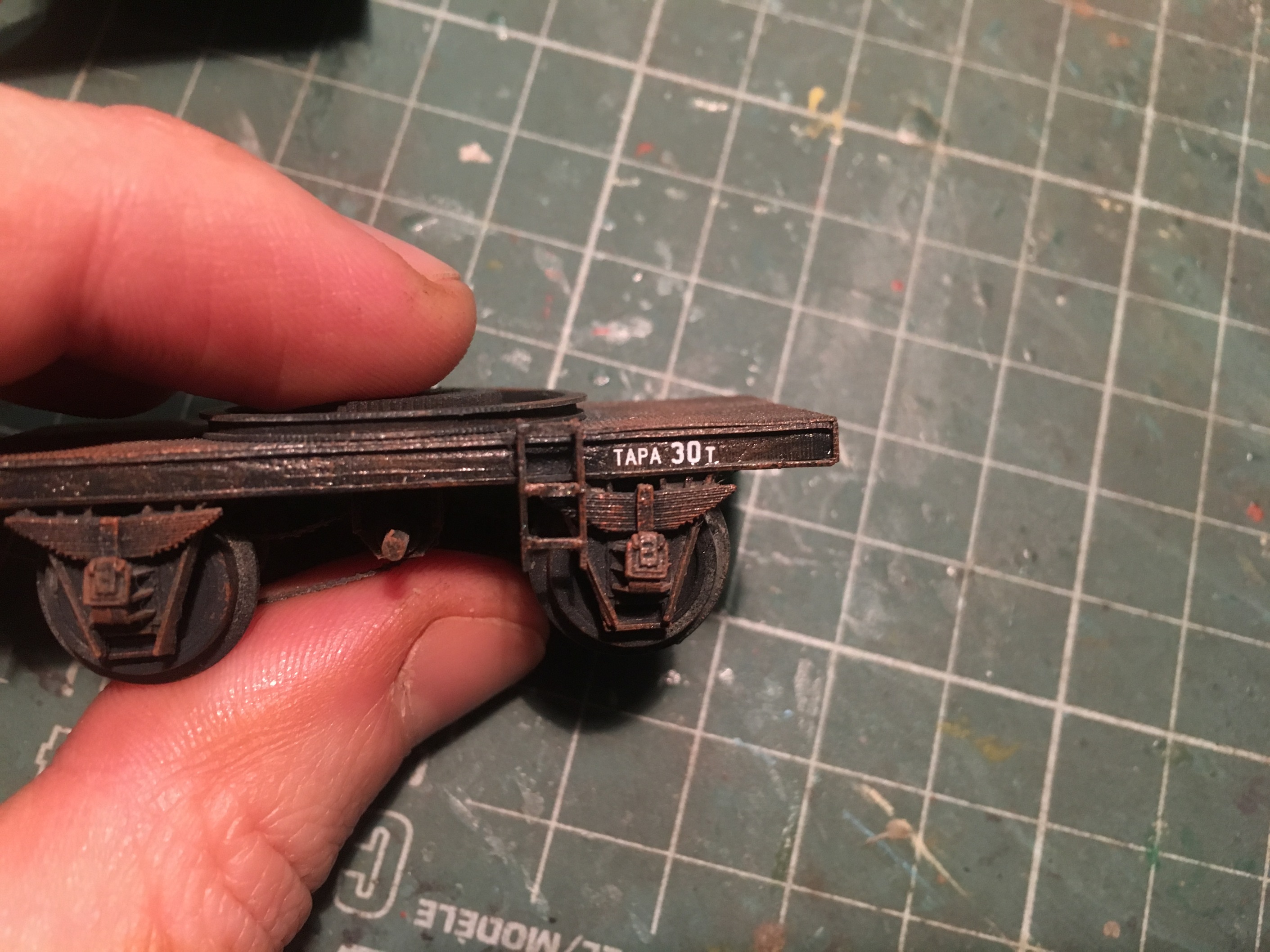 Дальше пошла покраска и декали. Платформа была давно пофкрашена светилась часто на фото с макета. Начал с грейфера:
