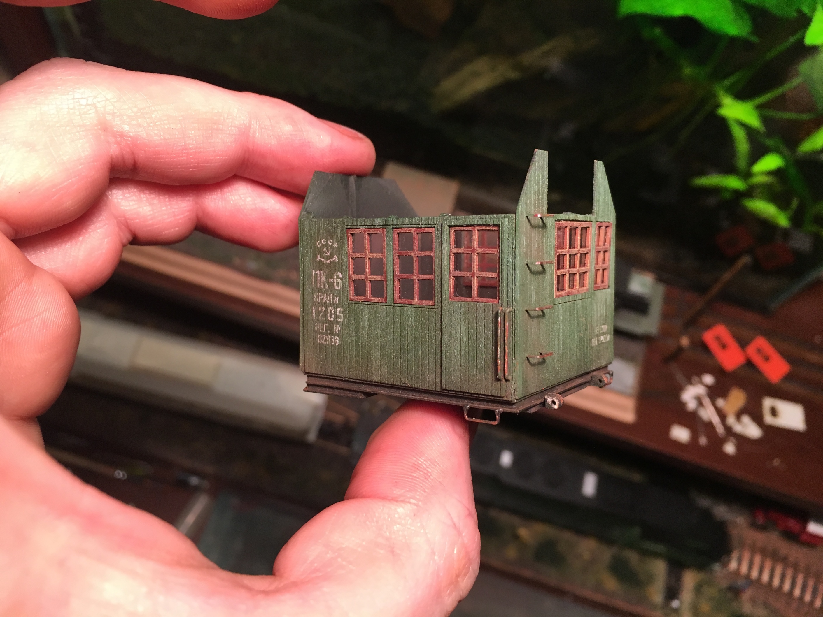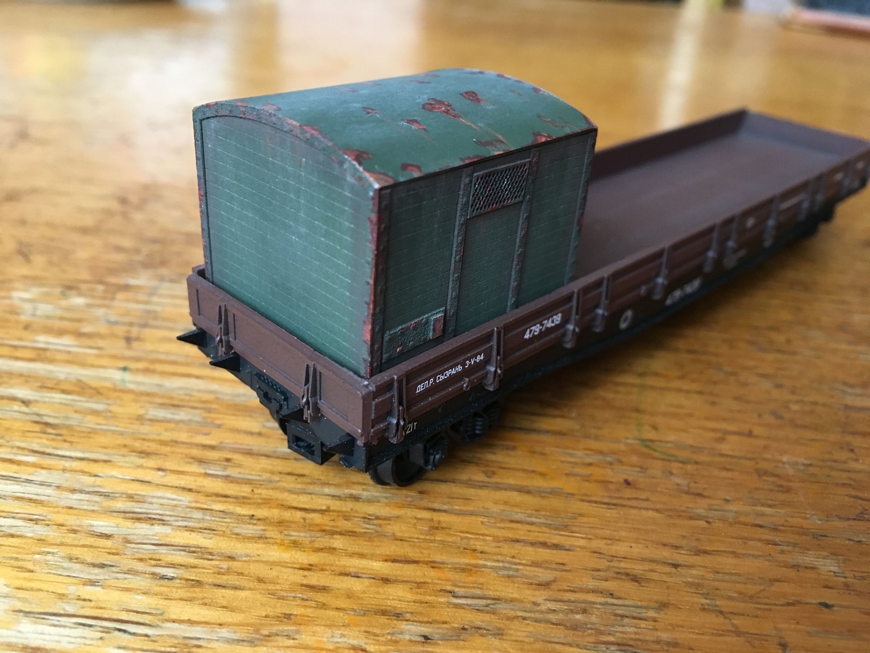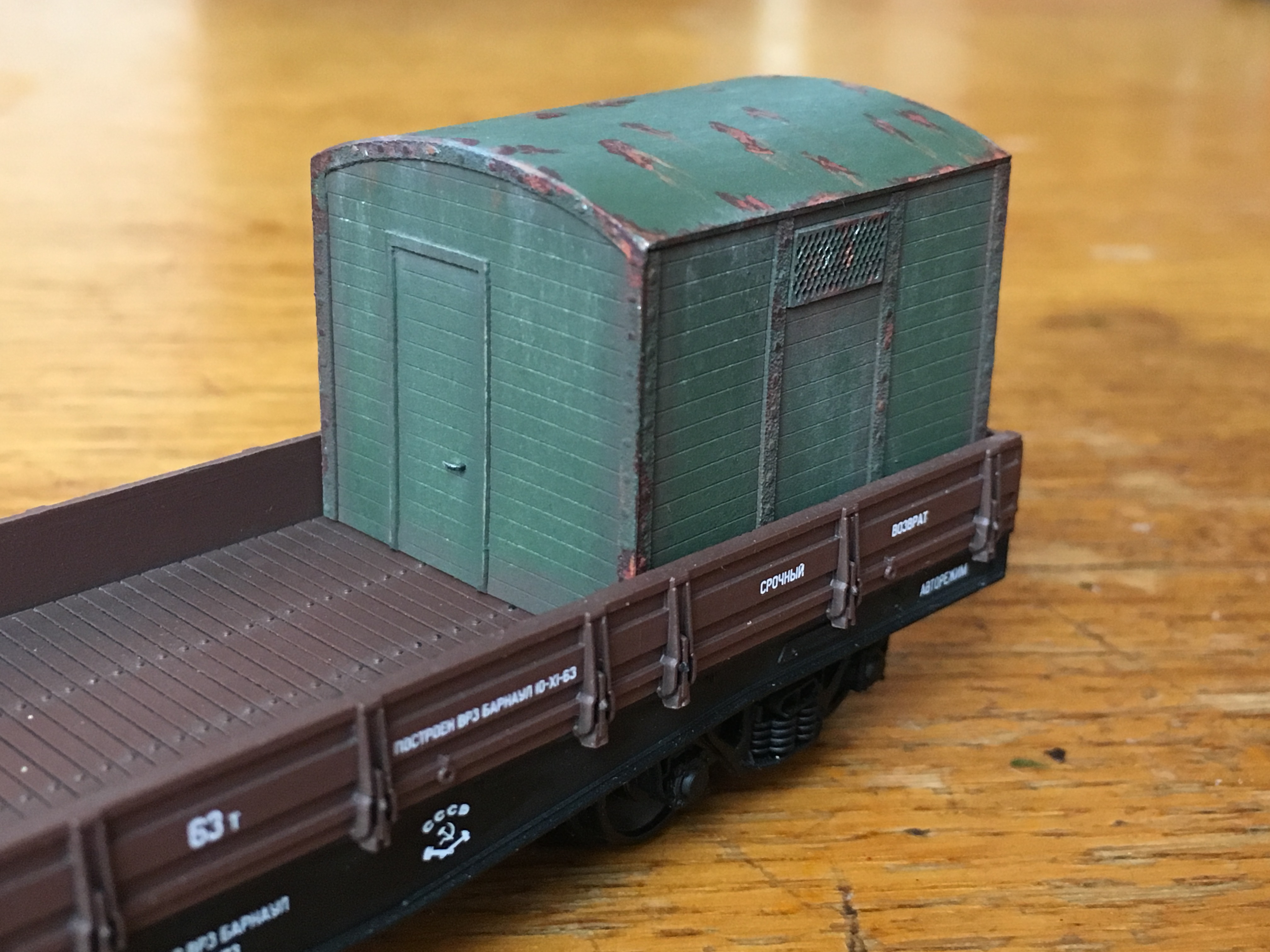 Ну и раз уж засветилась будка с платформой, напишу и по ней. В серию запустил три типа будок, на платформы хозяйственных и восстановительных поездов. Да и в платформы сопровождения кранов, они тоже отлично заходят. Собственно один из тестов, я запустил в оборот: