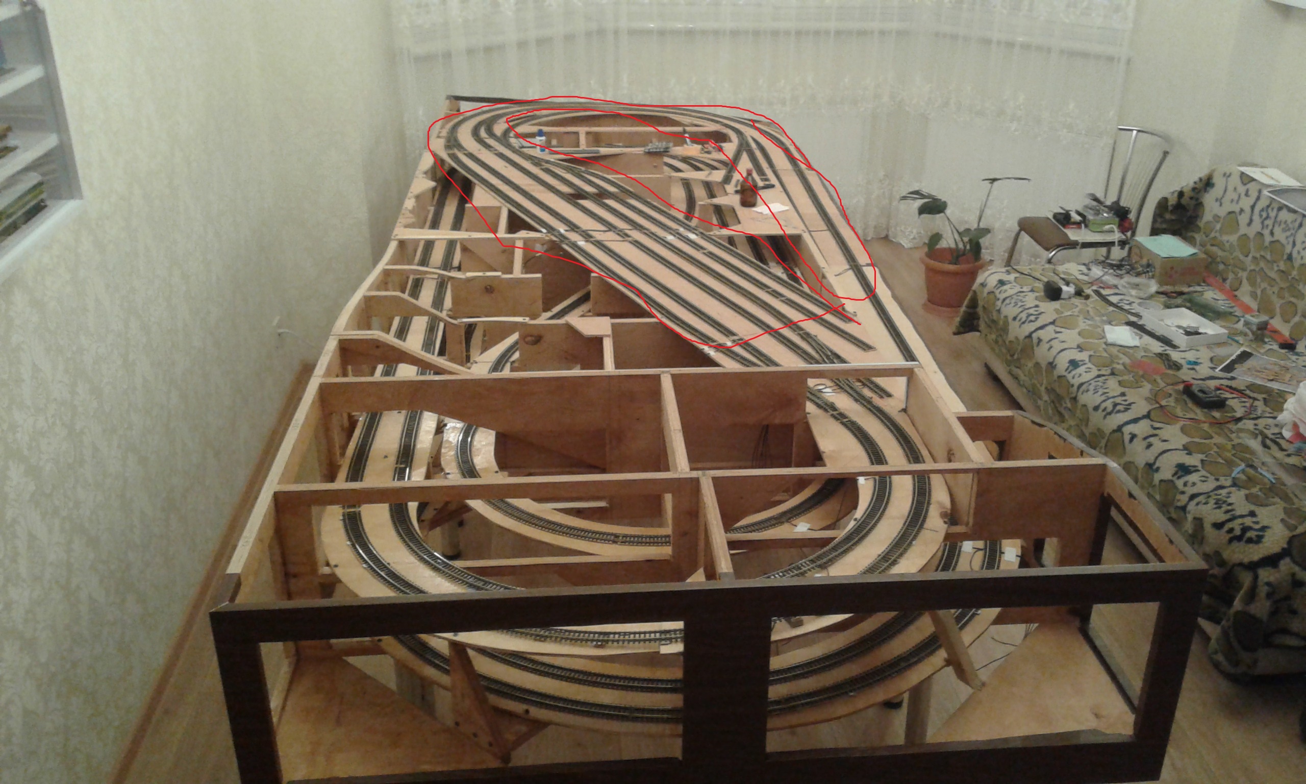 Недурственный такой размер макетика! :shock:Необычная также путевая схема.Только правое полукольцо и станция