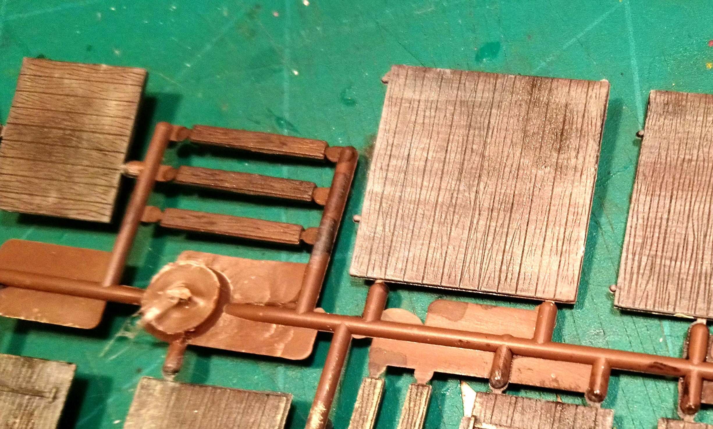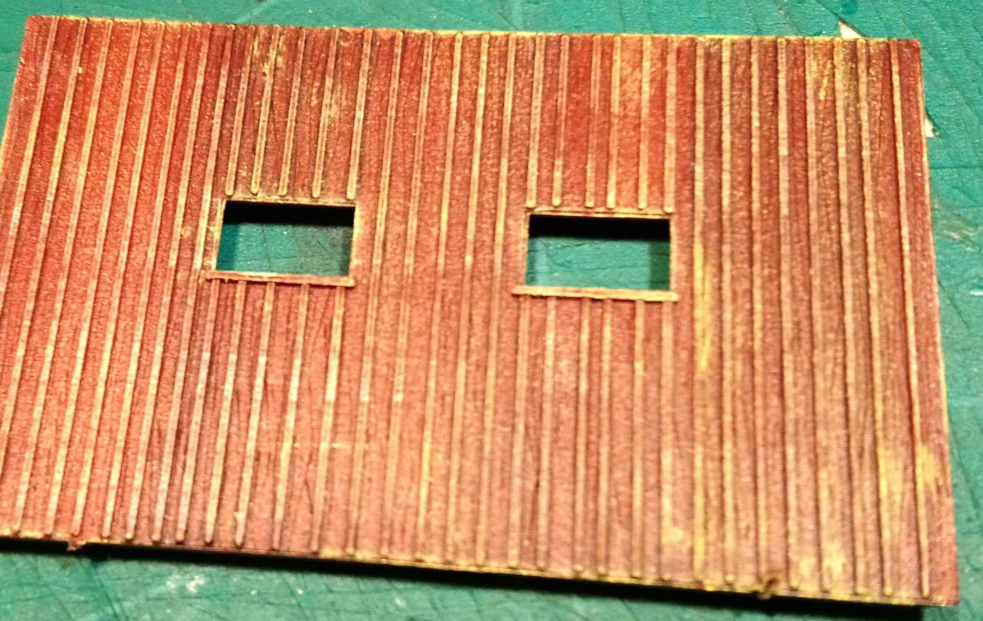 Старт начал традиционно.Со смывок фактуры досок,кирпичей и покраски прямо в панелях. :roll: