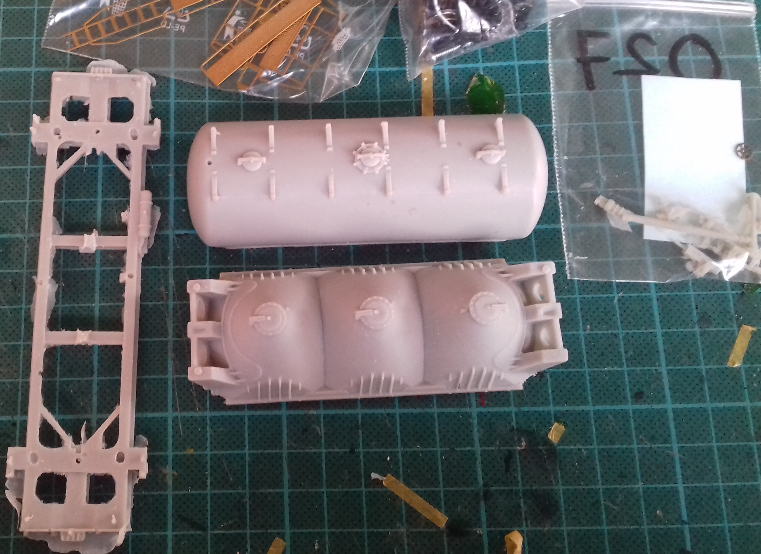 В коробке с китом приехало следующее: Да, на деталях много облоя. Есть мелкие раковины. Но порадовало, что все стыкуется и есть почти полный комплект деталей. Не хватало всего одного элемента.