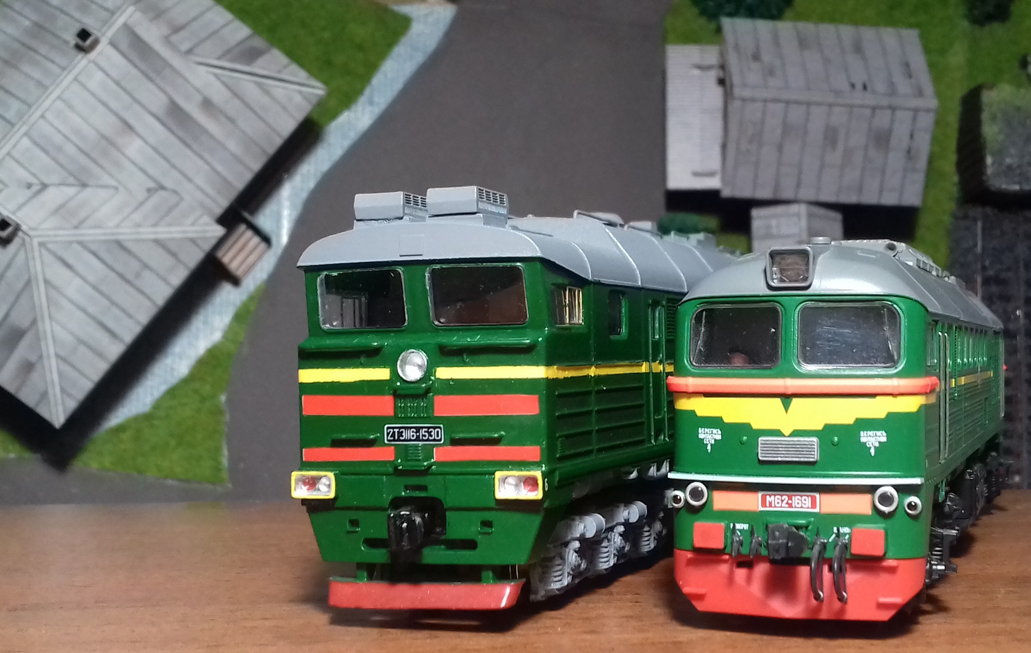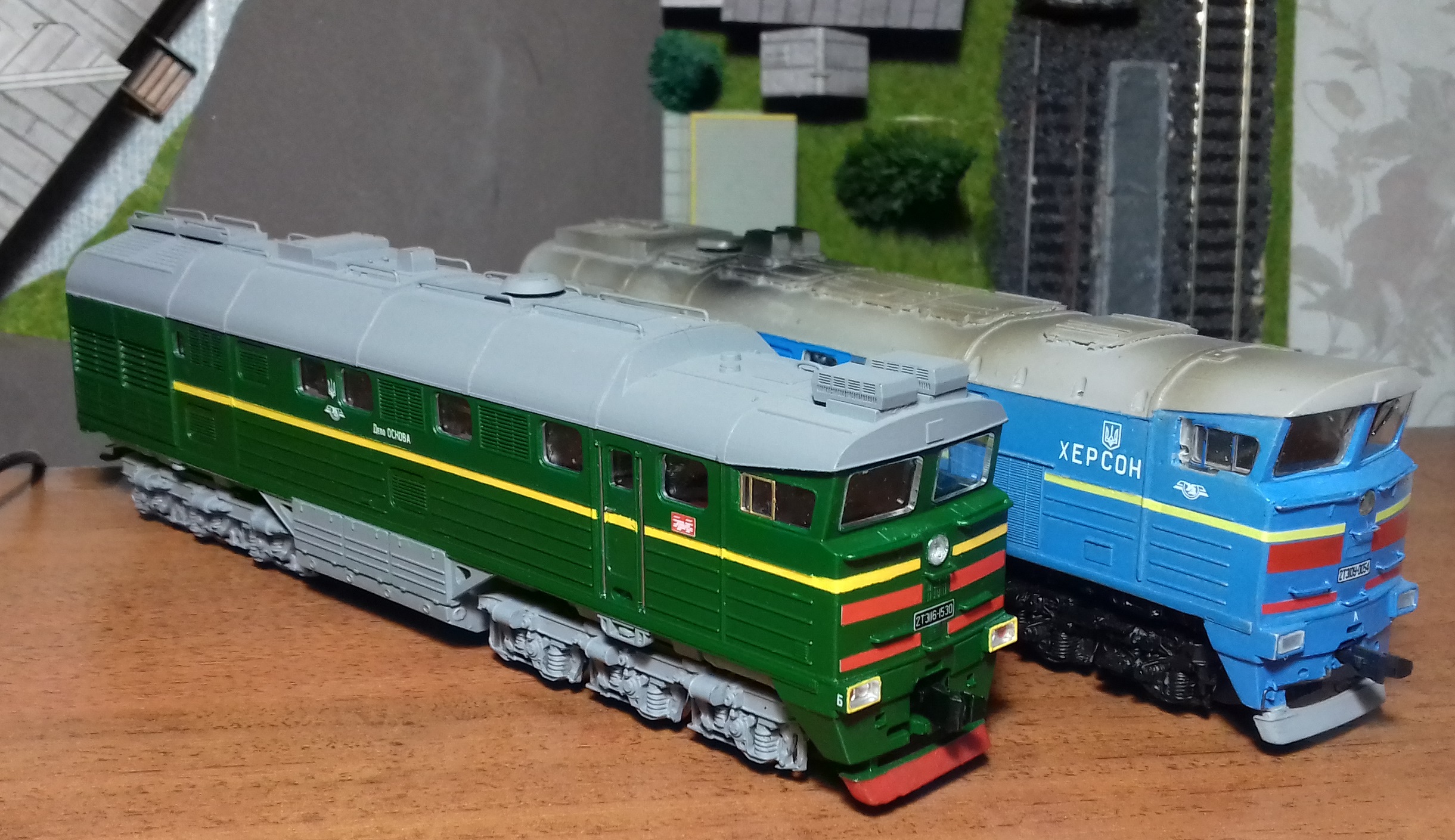 Ну во первых, на старой версии поручни есть, а в зеленом варианте победила лень-матушка. На моделях Н0 сделать поручни вообще не проблема.