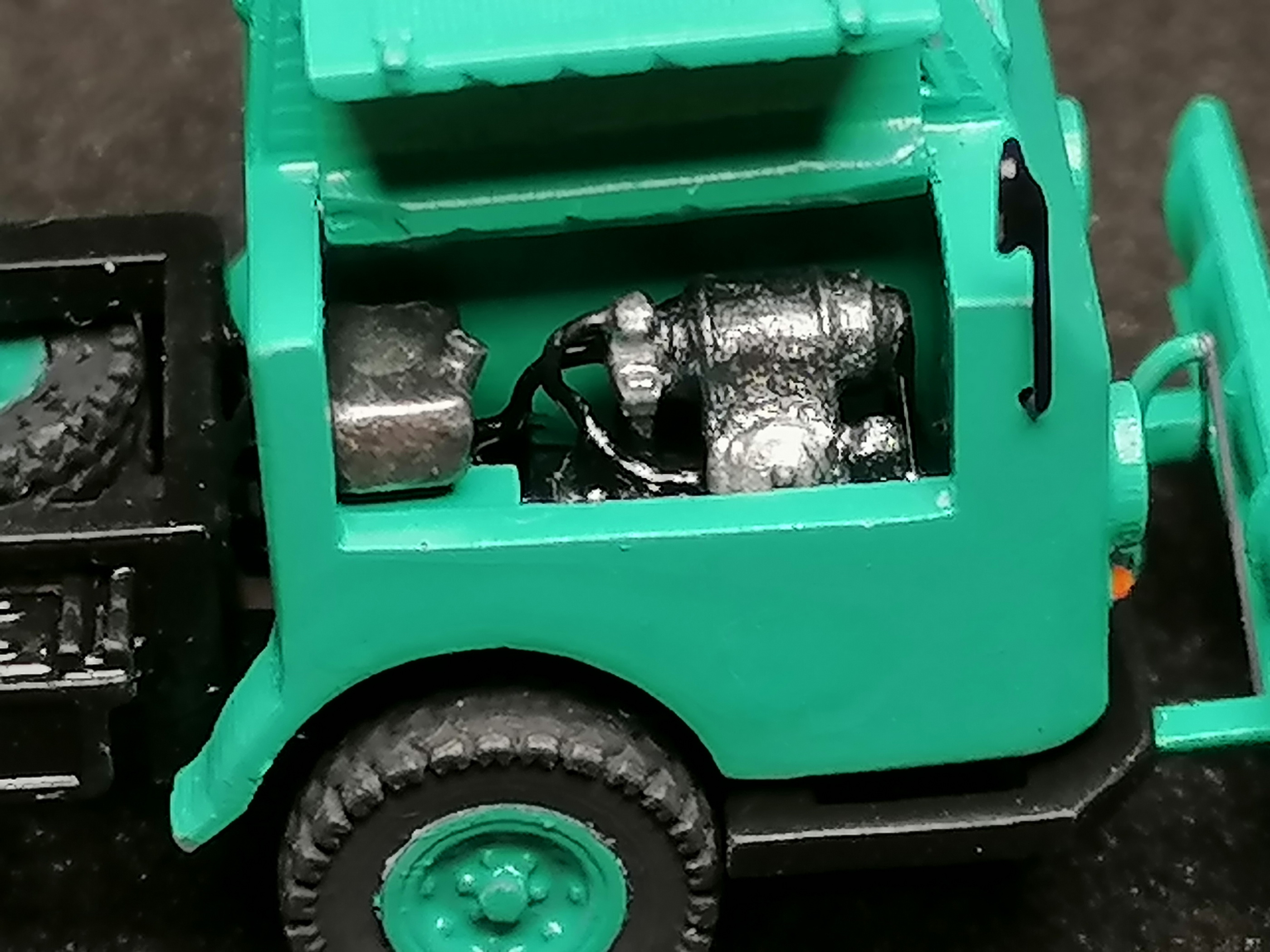 Дверь кабины открывающейся не делал, но приклеил на ПВА. На будущее.
