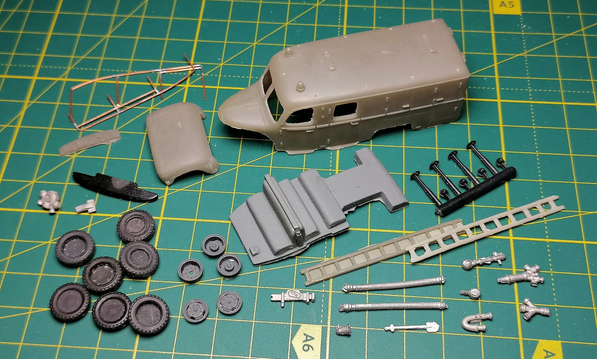 Автобус на базе Hanomag L28 Пожарка на той же базе Микроавтобус Bogwart И БТР-40 в 4-х вариантах: тентованый, зенитный, открытый с пулемётом и бронированный. Отлитого бронированного сейчас нет, но формы для отливок сохранились. Нет формы корпуса автобуса, а мастер поломан. Возможно, восстановлю со временем. Некоторые формы даже переделал, т.к. старые пересохли. Из Вуда лить не буду, колеса покупать тоже (хотя от колёс бы не отказался), поэтому всё это тоже заформовал для литья из смолы. Где то лежит коробочка с отлитой мелочёвкой на пожарку, надо ещё поискать.