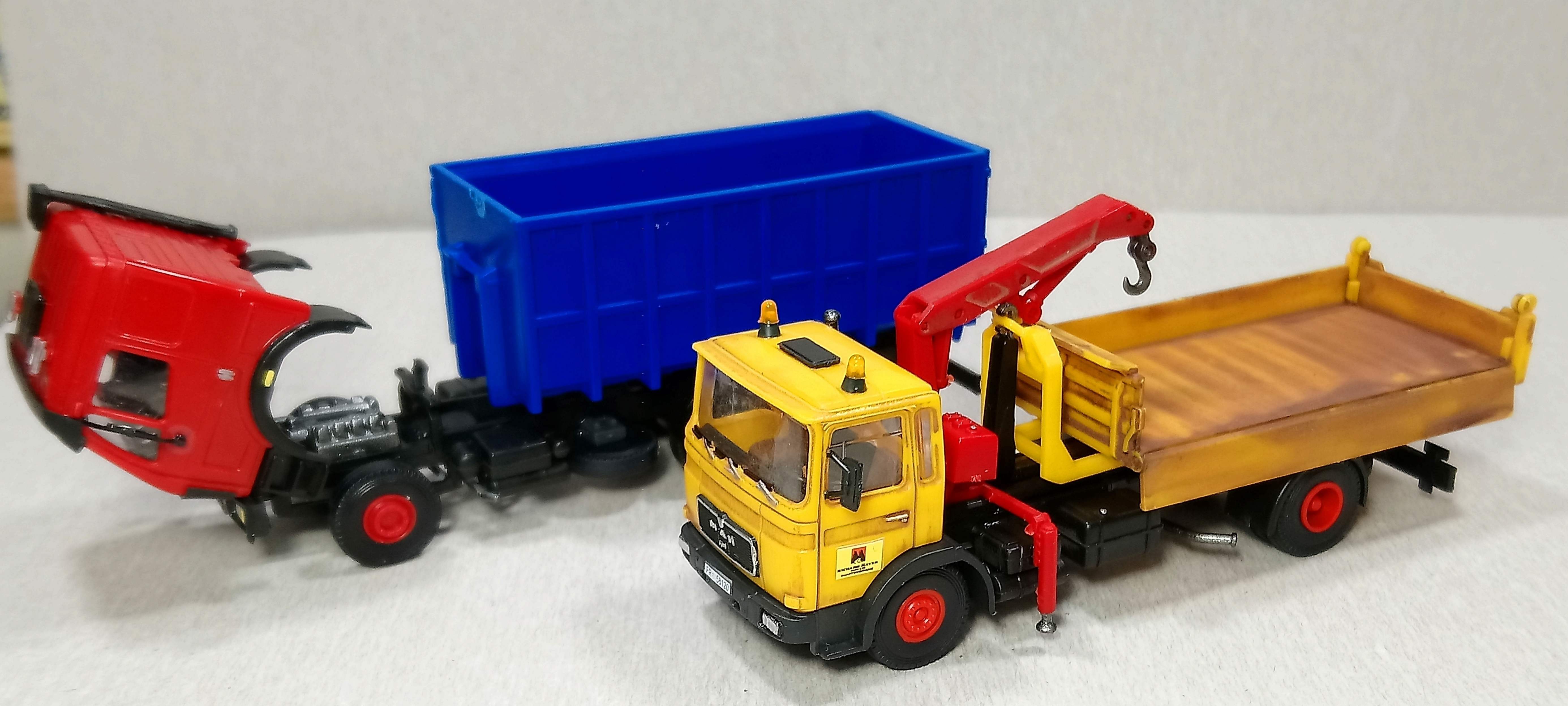 Позволю себе добавить аналогичных грузовиков.Суть таже. Также очень радует их функциональная подвижность.В моем случае грузовики окрашены,