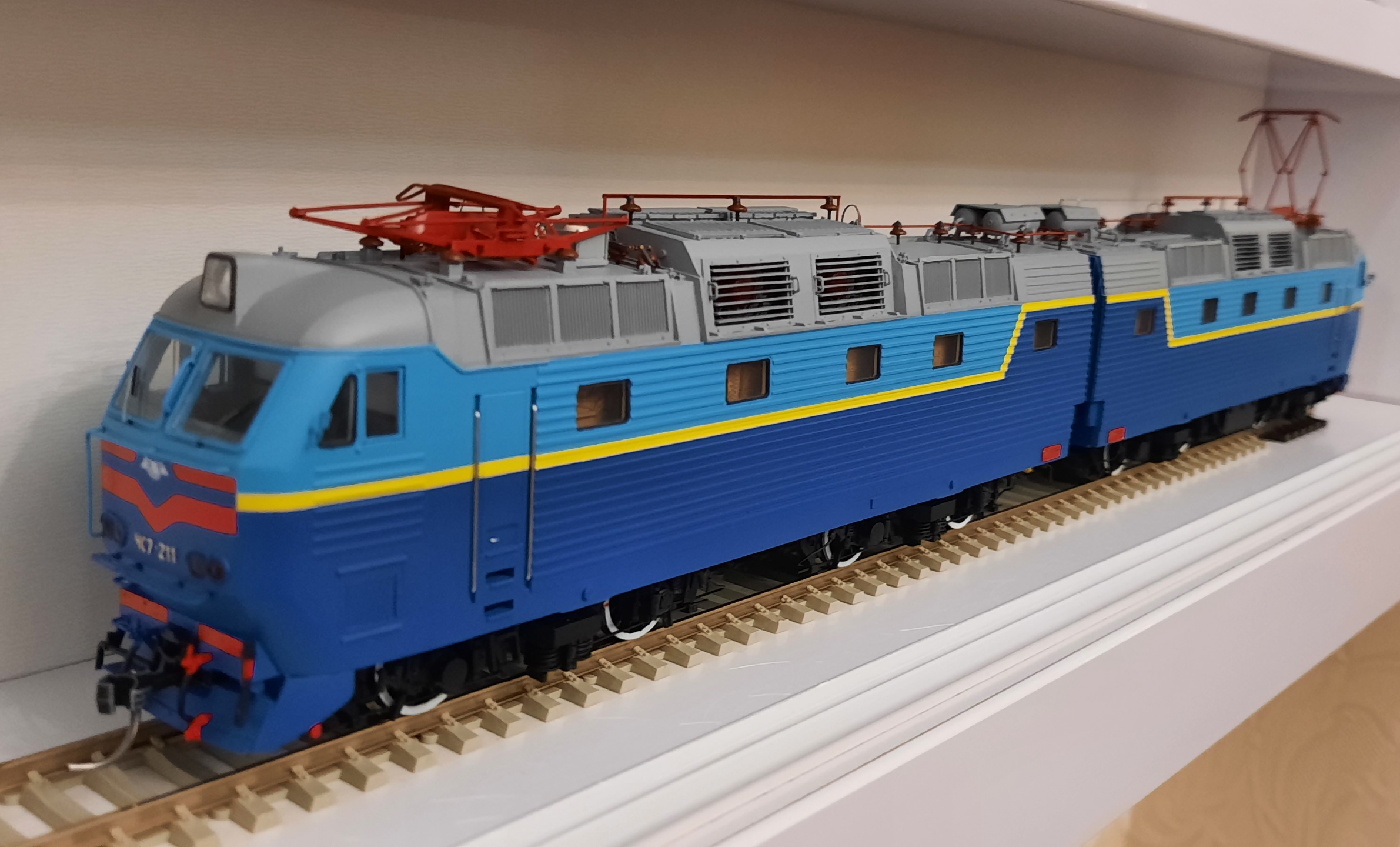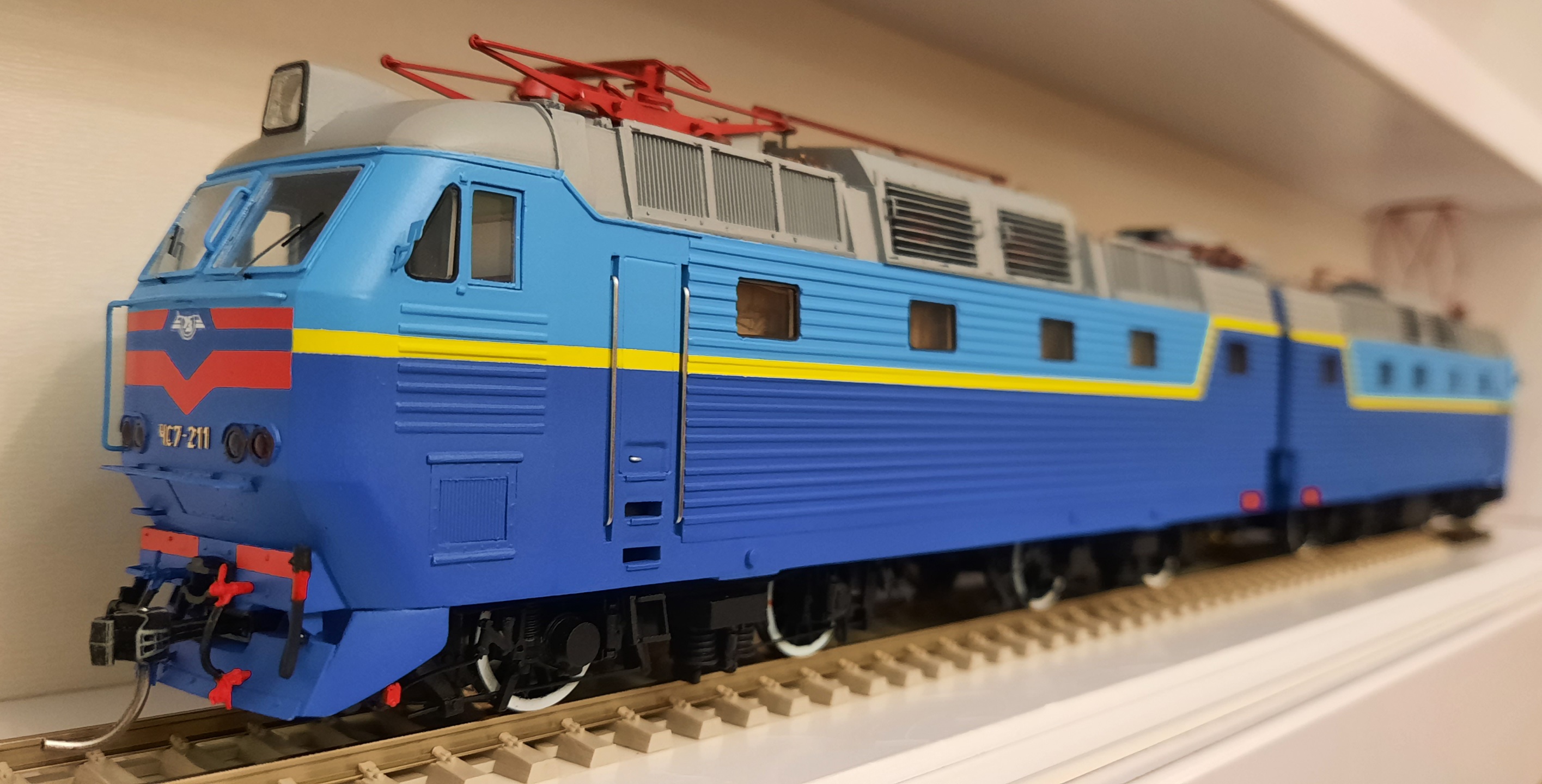 Вітаю шановні! Теж став власником чудової моделі від Сергія. Зустрічайте ! ЧС7-187 .Ходовий та зі звуковими декодерами ( дякую Ігору Burbon ). Вибрав таку ліврею, від якої в Сергія побільшало сивого волосся ;) Виконання на висоті, навіть слів не вистачить , щоб описати свої емоціі та враження! Фото , як міг, так і зробив. Можливо майстер додасть фото кращої якості. Валерійович, дякую!
