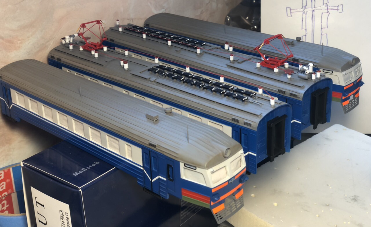 Сейчас же идет процесс по постройке электрички ЭР9Т в окрасе БЧ, фото того что готово на данном этапе ниже, ну а описание и фото готовой работы выложу уже после окончания процесса..