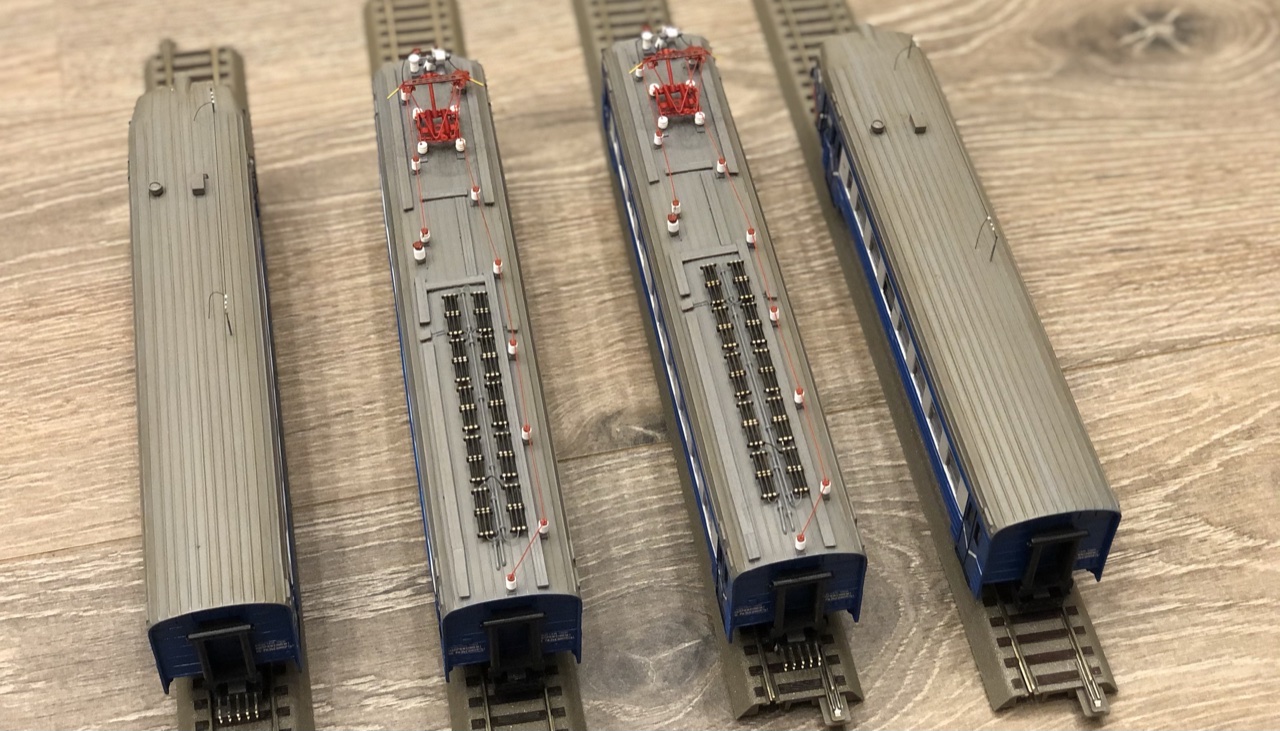 Ранее в группе вк описывал некоторые доработки, которые касались крыши, повторюсь еще раз. После того как приклеил изоляторы и сопротивления, решил имитировать еще токовидущие шины и перемычки между сопротивлениями.. более дополненной и детализированной получилась крыша.