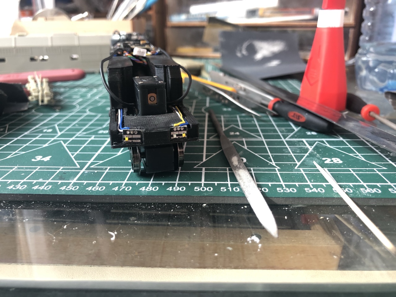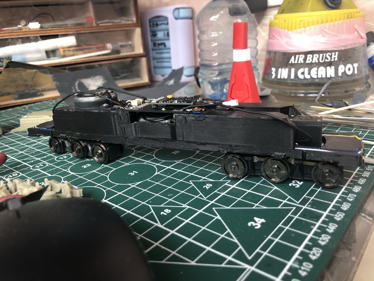 Кит, как и все до этого, собранные мной, отлит из смолы от фирмы БуДем (Илья Бушнев https://youtube.com/user/avtobush). Обмоторку и отцифровку так же делал Илья. Звуковой декодер стоит от Моделдепо (http://www.modelldepo.ru ), кстати, Илья прислал мне белорусские звуки, нужно разобраться с программатором и перезалить их.