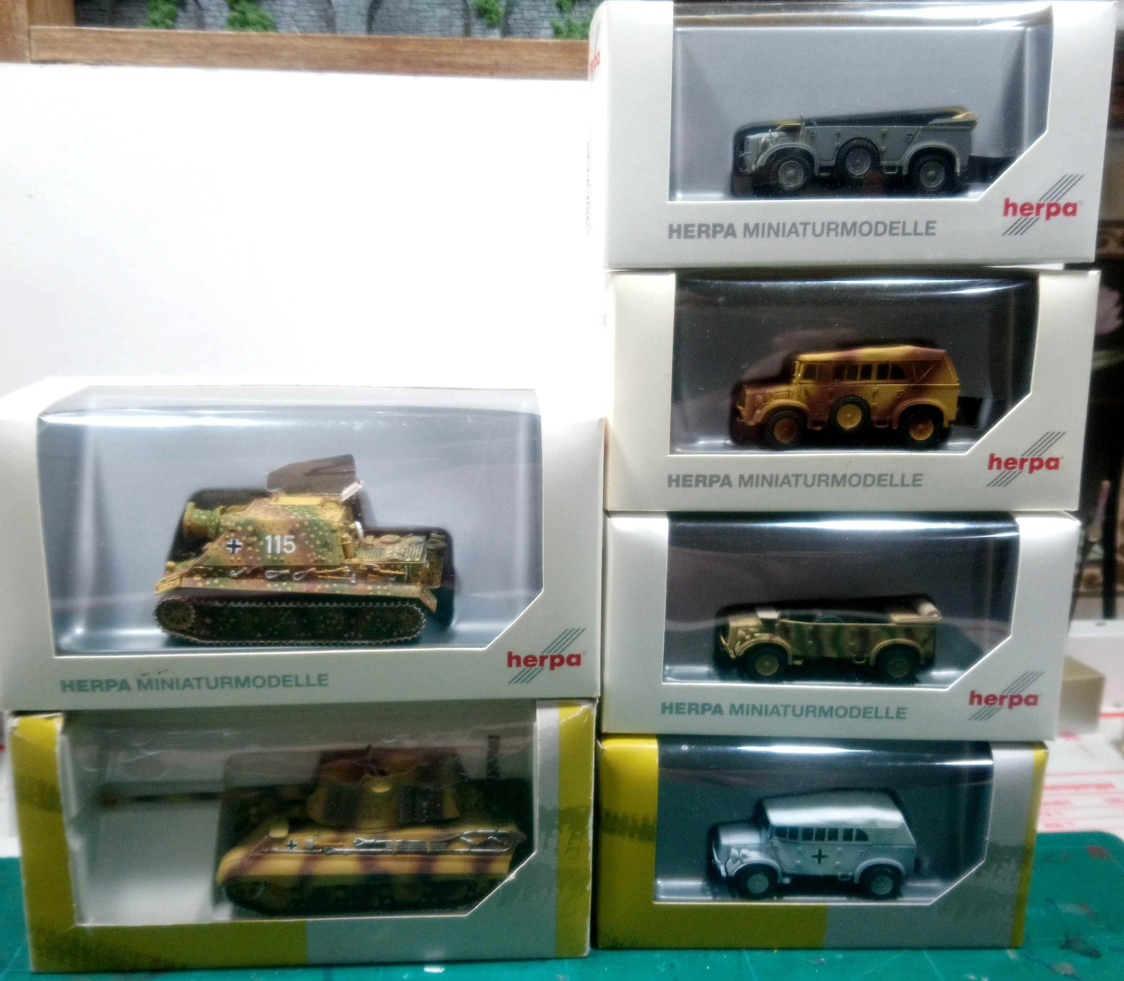 люки подвижные.Моторный отсек у королевского открывается и внутри есть мотор. Полный комплект Херповских "Хорхэ".Все разные конструктивно и родом войск.(Люфтваффе,Вермахт,СС и Полицаи). Также покрашен слегка интерьер и состарено днище.