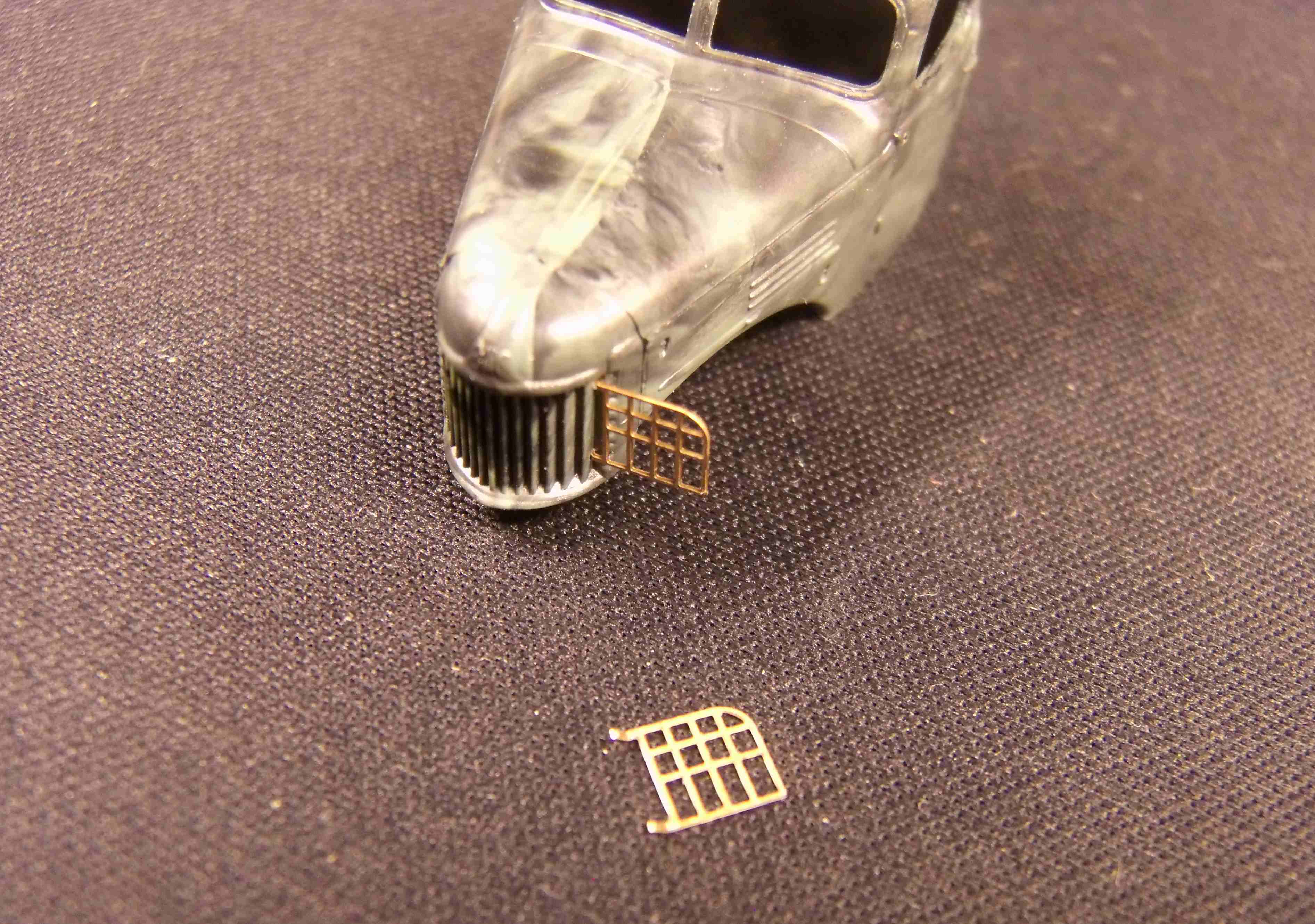 Защитные сетки для фар. Что бы красиво их поставить, пришлось удлинять их держащие ножки, допаяны усики.
