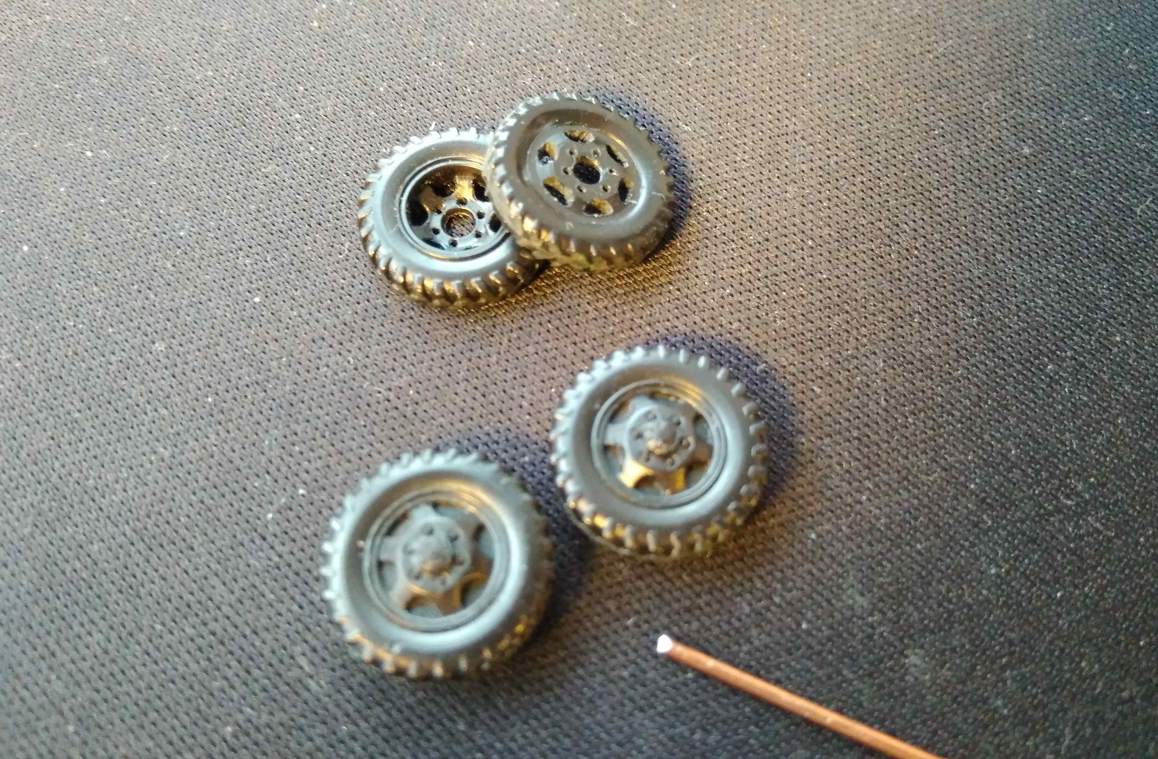 Удалось прорезать сквозные отверстия в дисках запасных колёс, мне они очень понравились, и поэтому захотелось оставить их на виду.