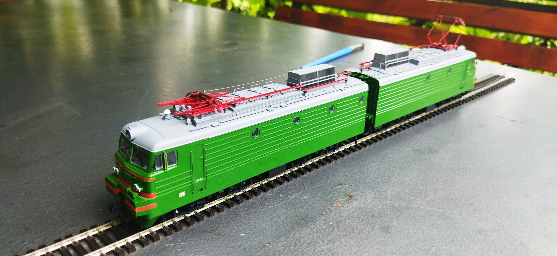 Зелёный ВЛ8 Юры Ковальчука из кита Караго и Солошенко. Я немного тогда Вадику помогал с пропорциями, особенно этих самых лобовых окон. Помню, он много матерился на меня, переделывая уже готовый мастер)))