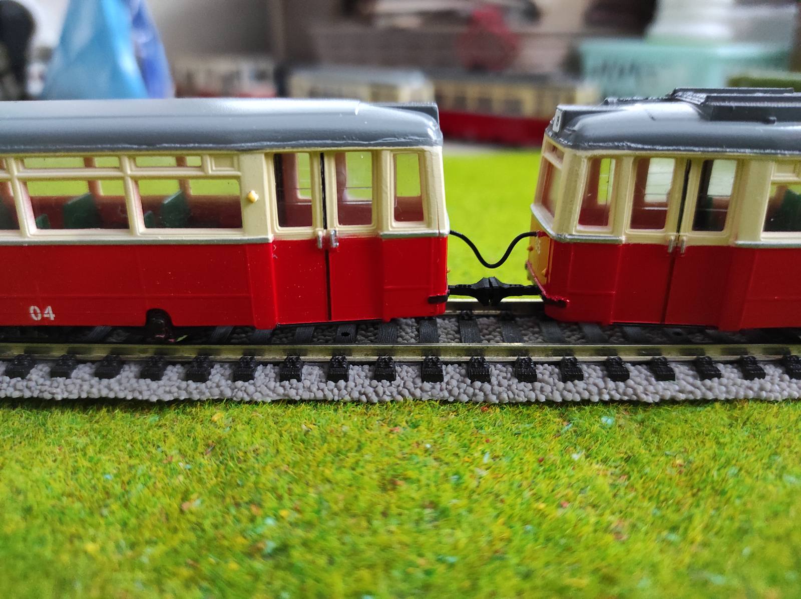 собрал пару трамваев на заказ,первый обычный вариант с голубой полосой,второй был расклеян и собран заново,в каждом вагоне кабина управления, полосу сделал серебристую-на подобии Евпаторийской готы с двумя кабинами в разных вагонах