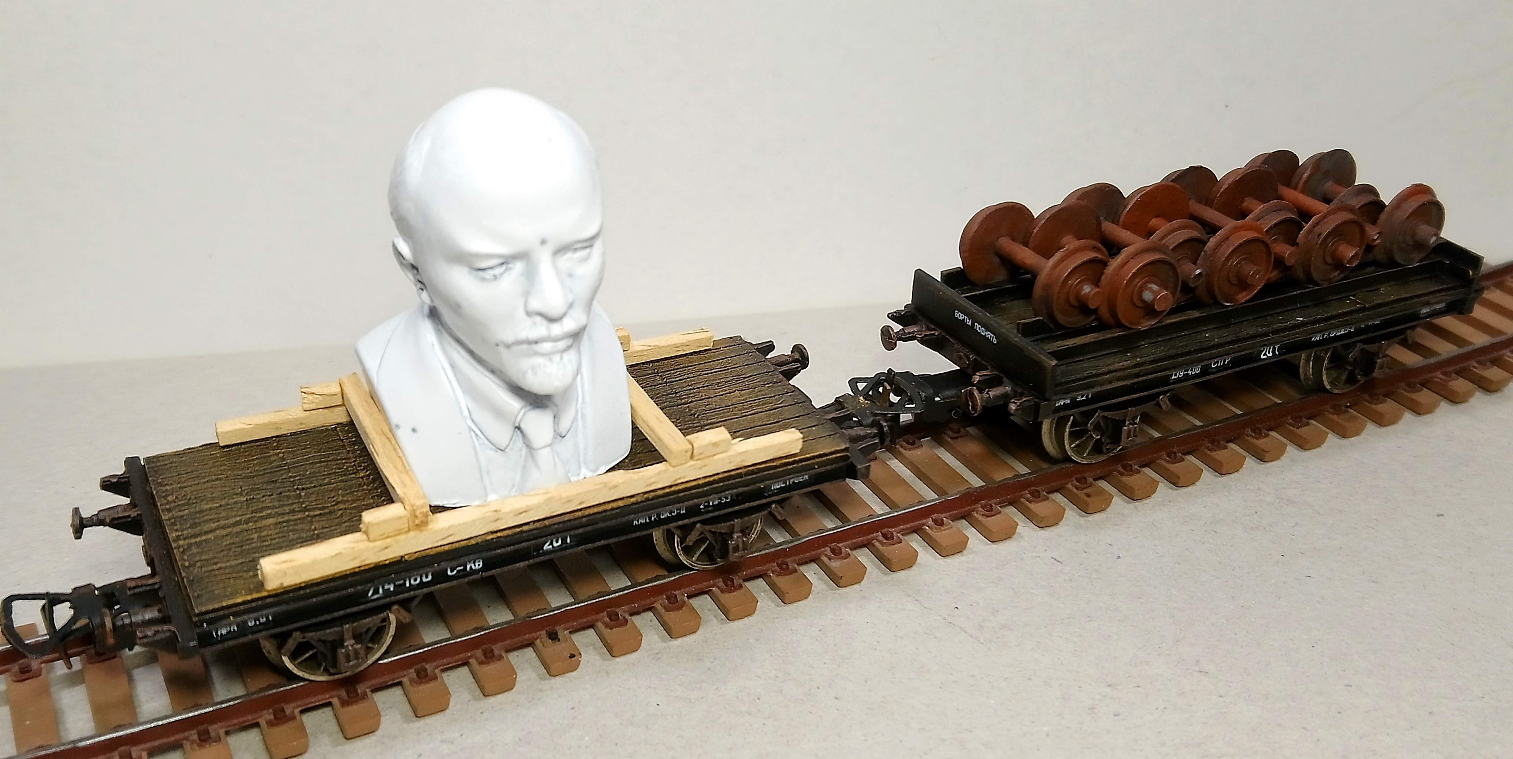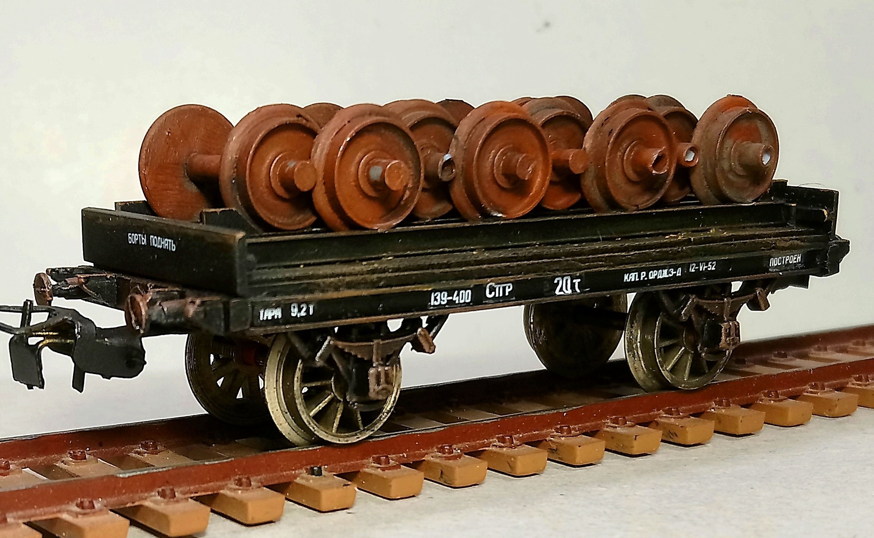 Из остатков смоляных платформ собрал пару спец вагонов.Одна для перевозки колесных пар(трамвайных).